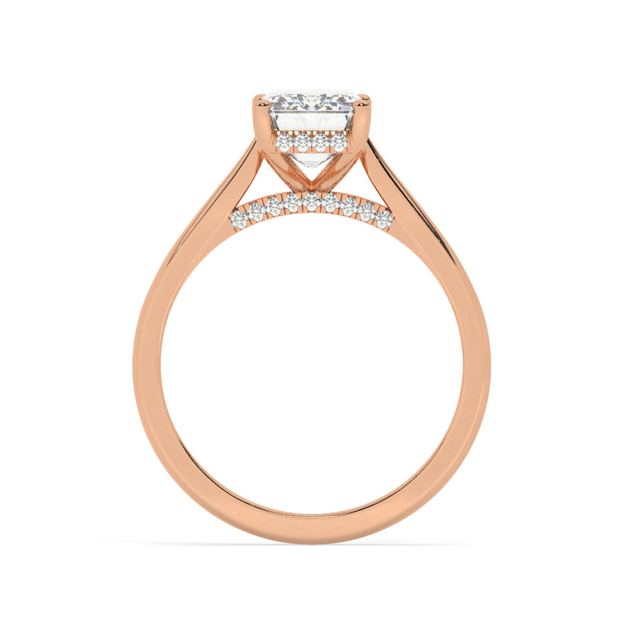 הילה נסתרת של יהלומים משובצת סביב ראש הטבעת.