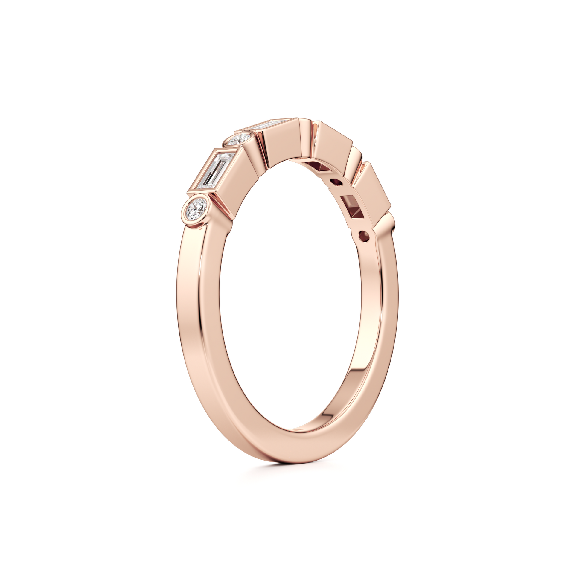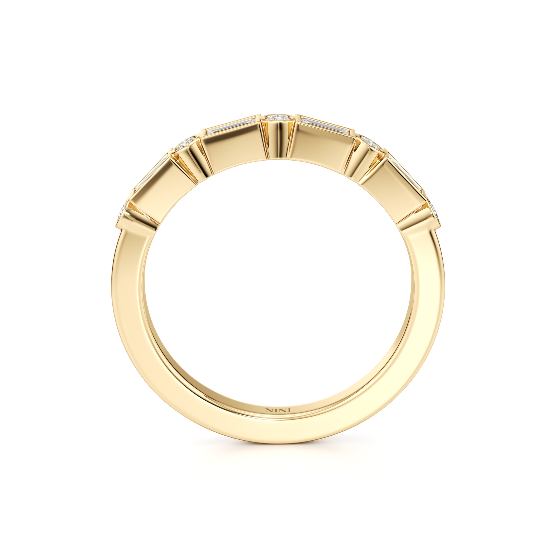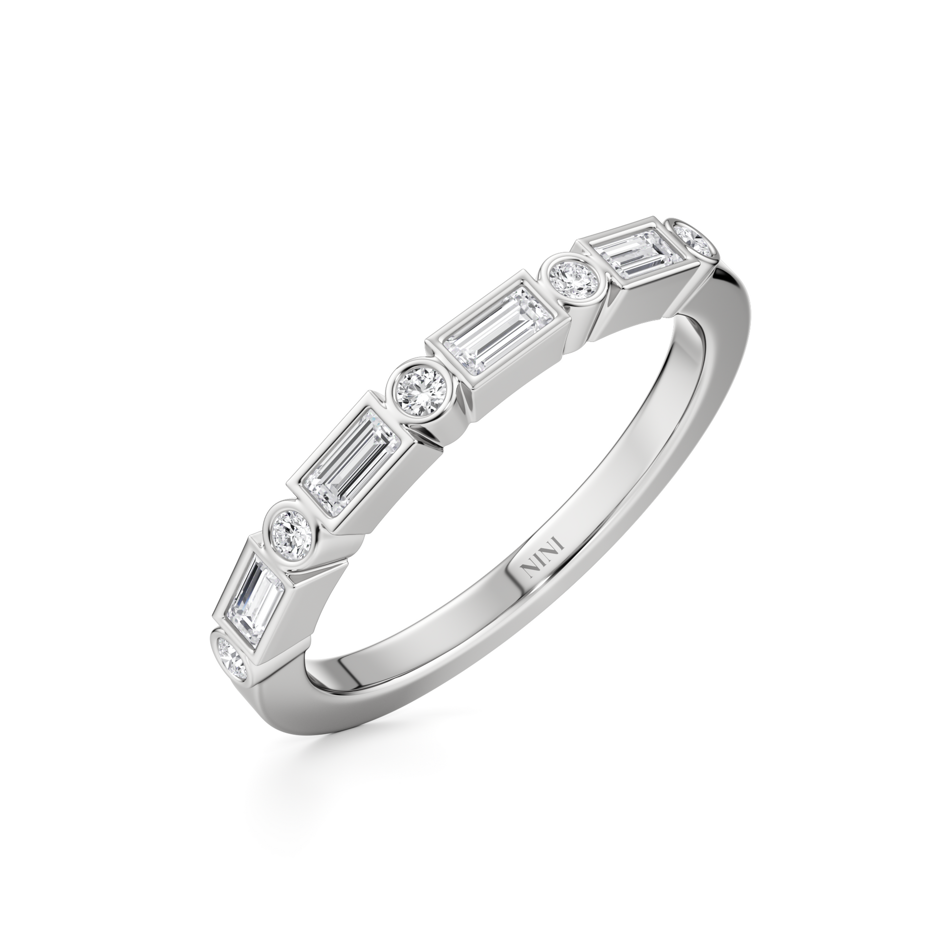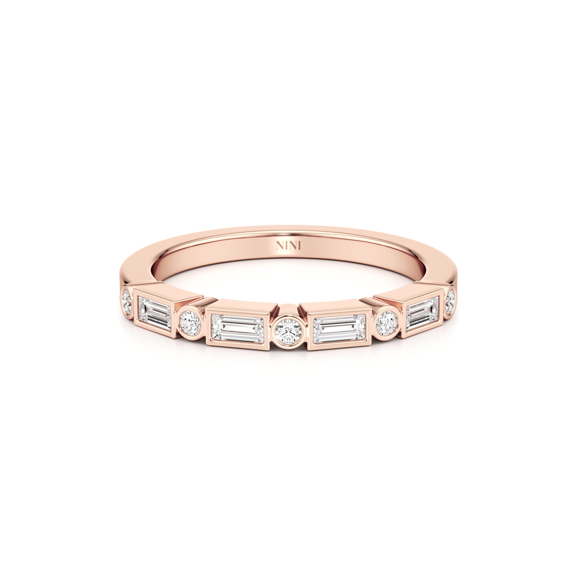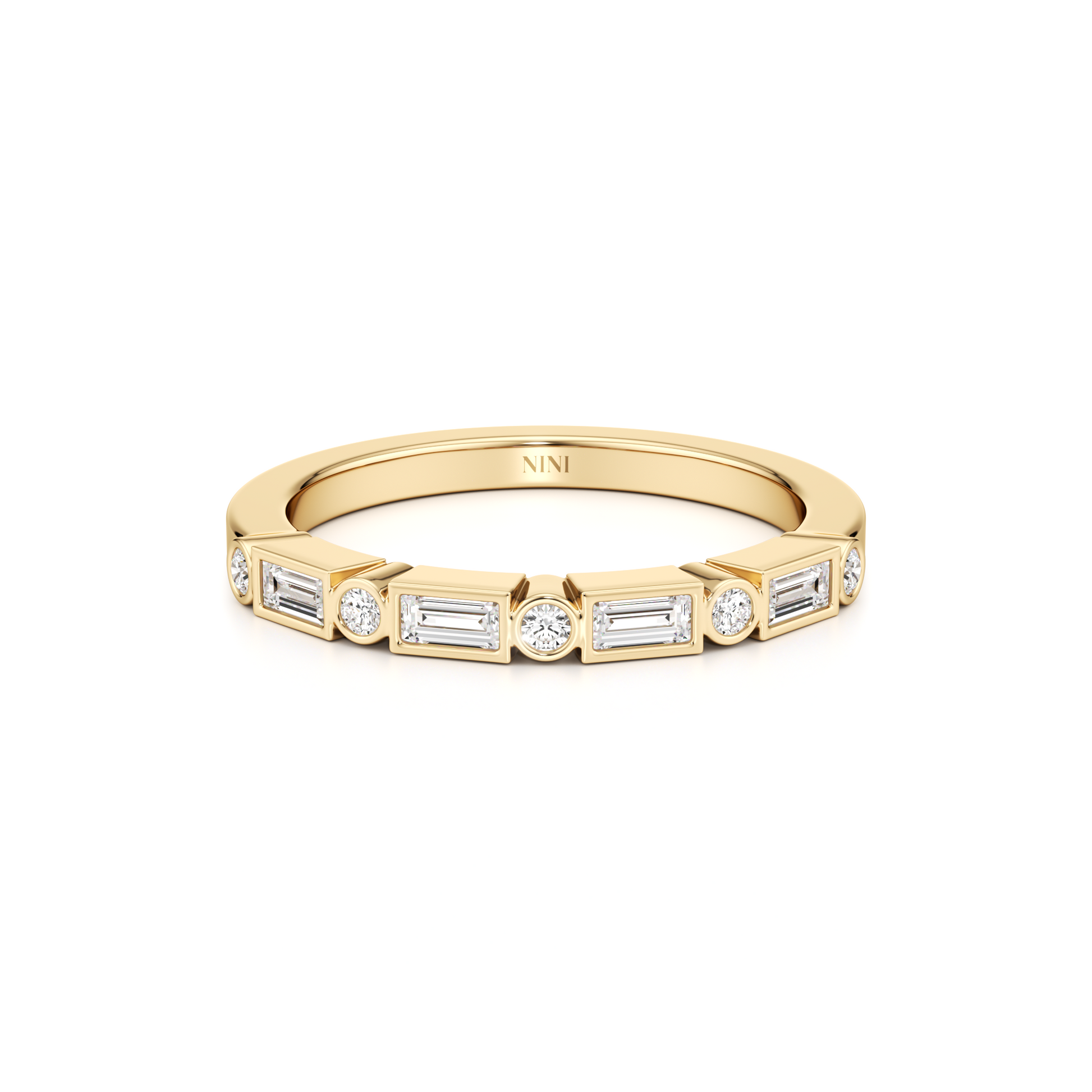 טבעת שורה שיבוץ בזל יהלומי בגט ויהלומים עגולים