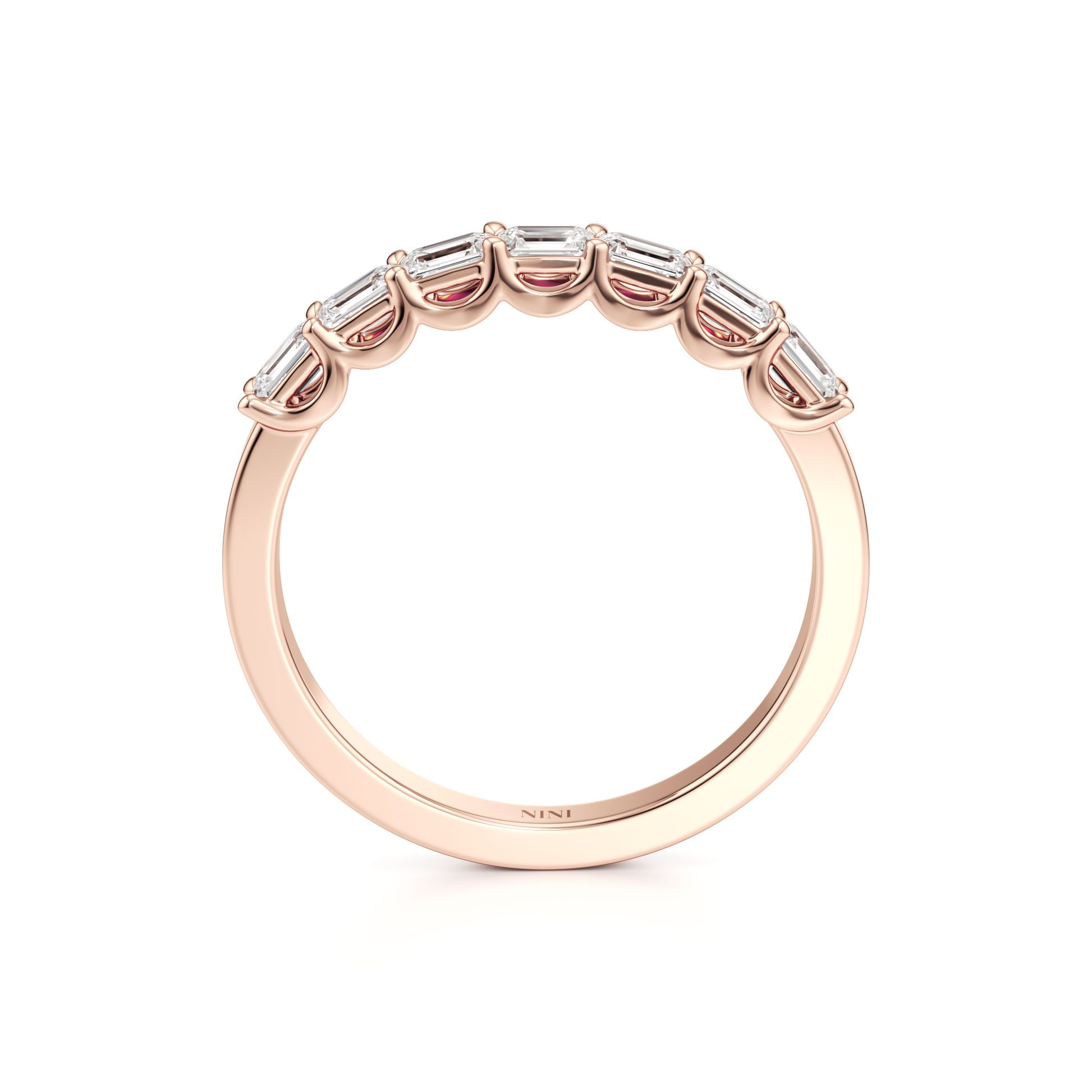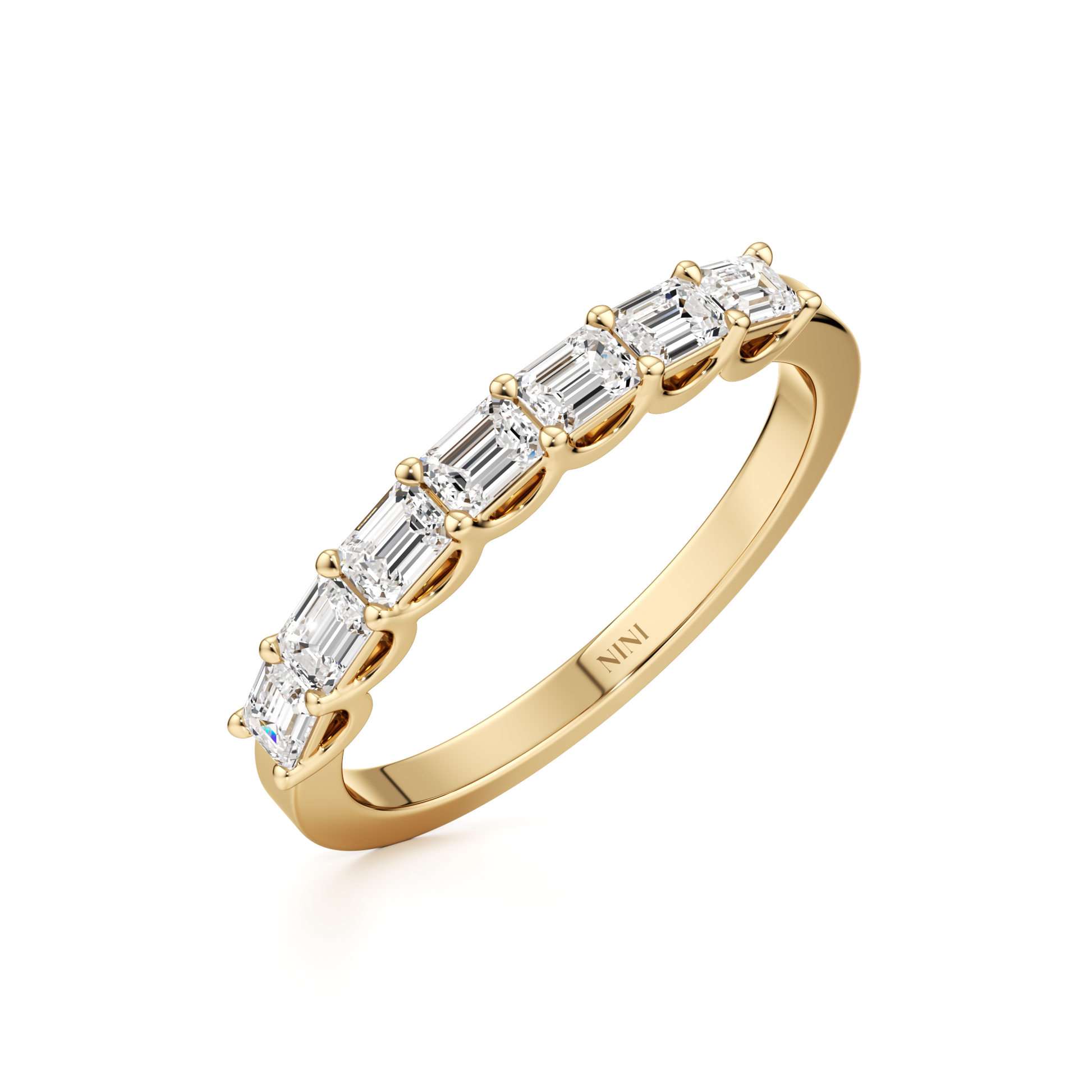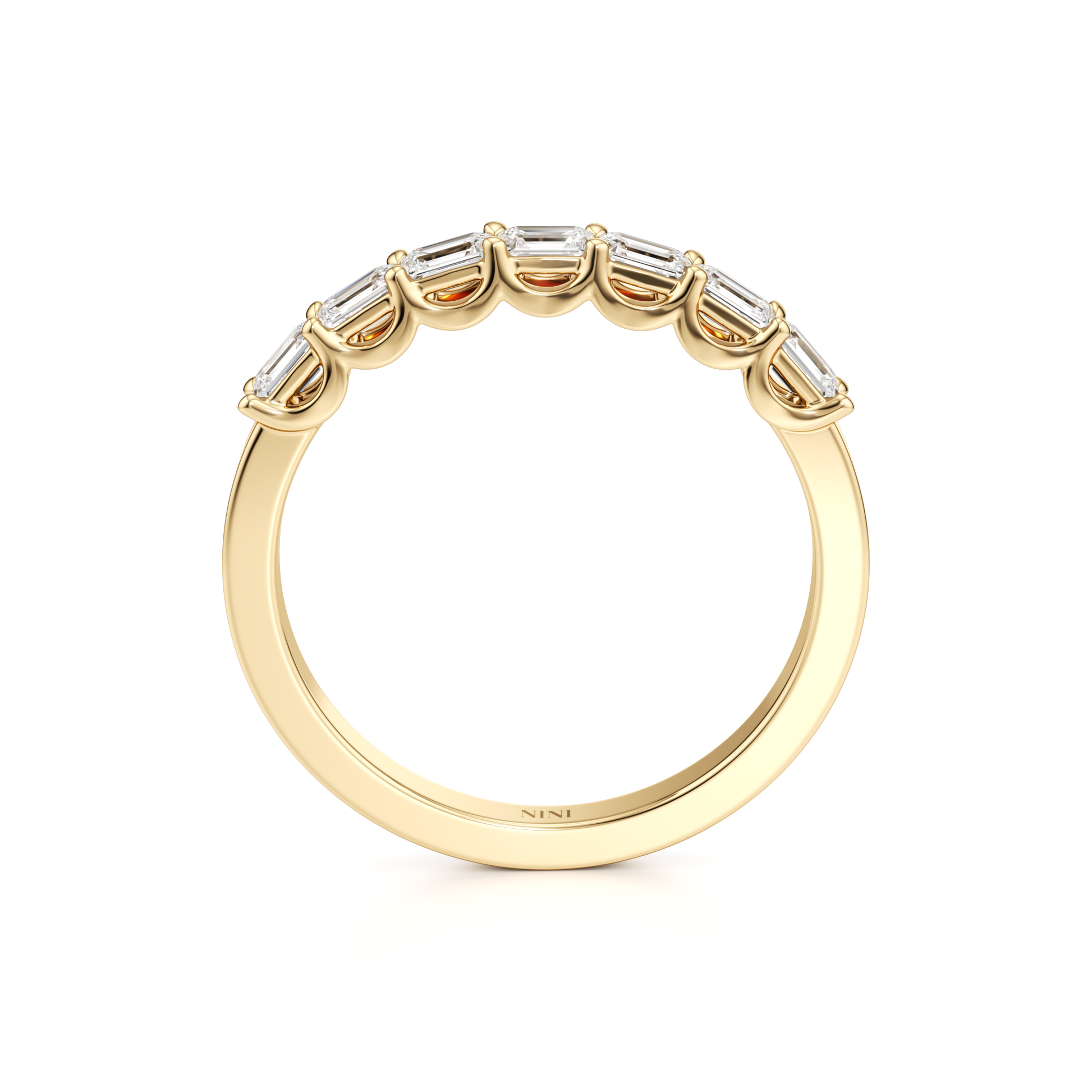 טבעת ייחודית עשויה זהב 14K ומשובצת ביהלומים בחיתוך אמרלד קאט במשקל 0.65 קראט