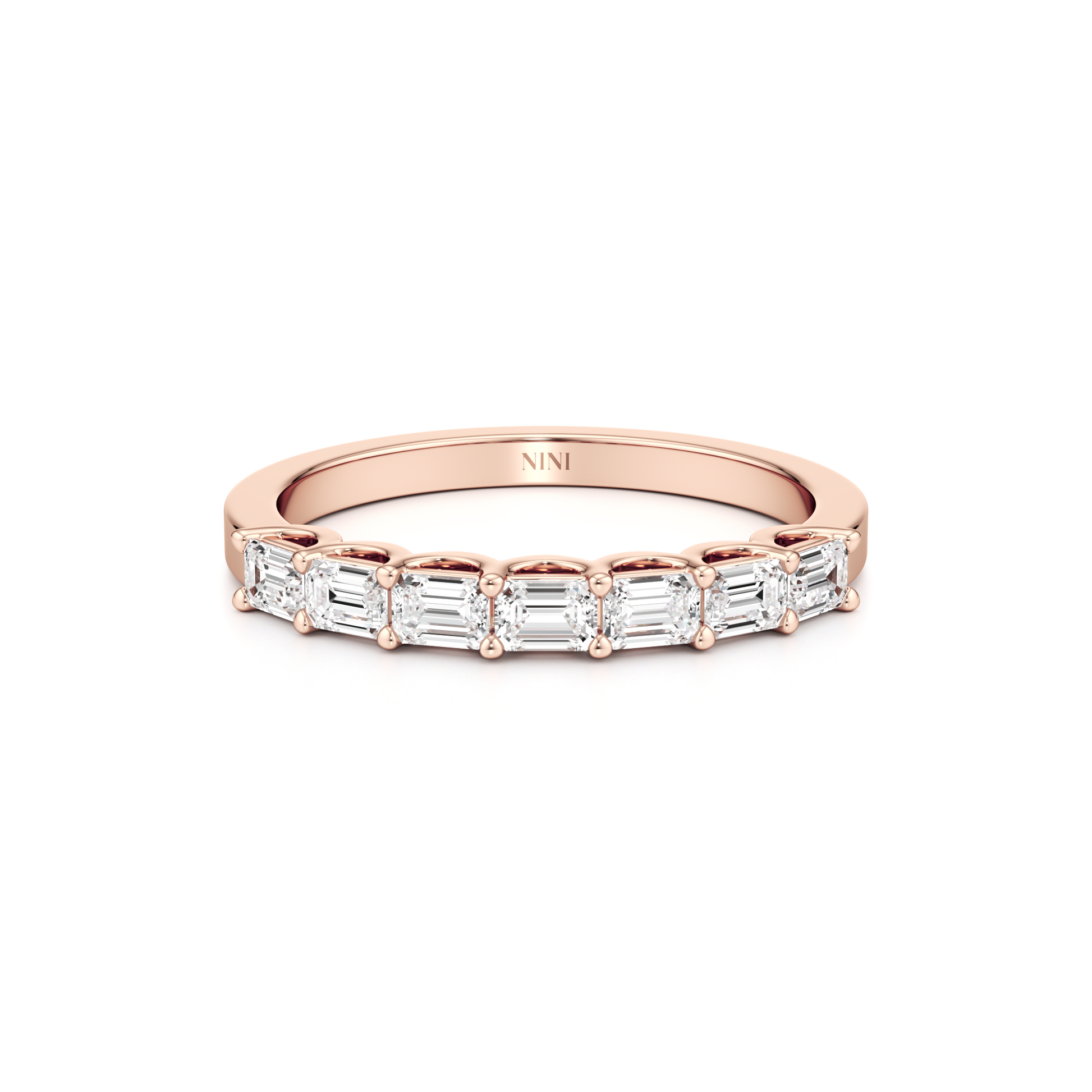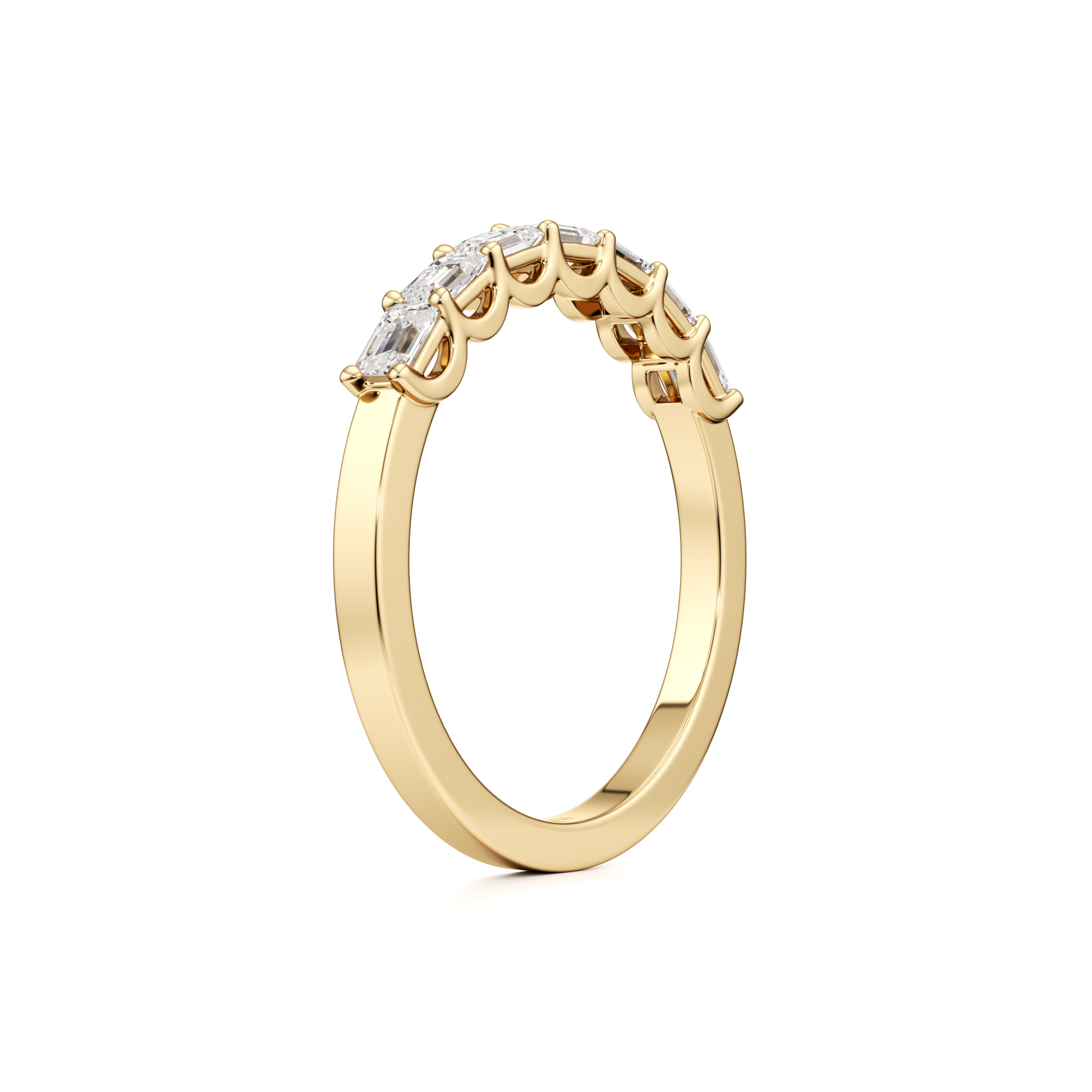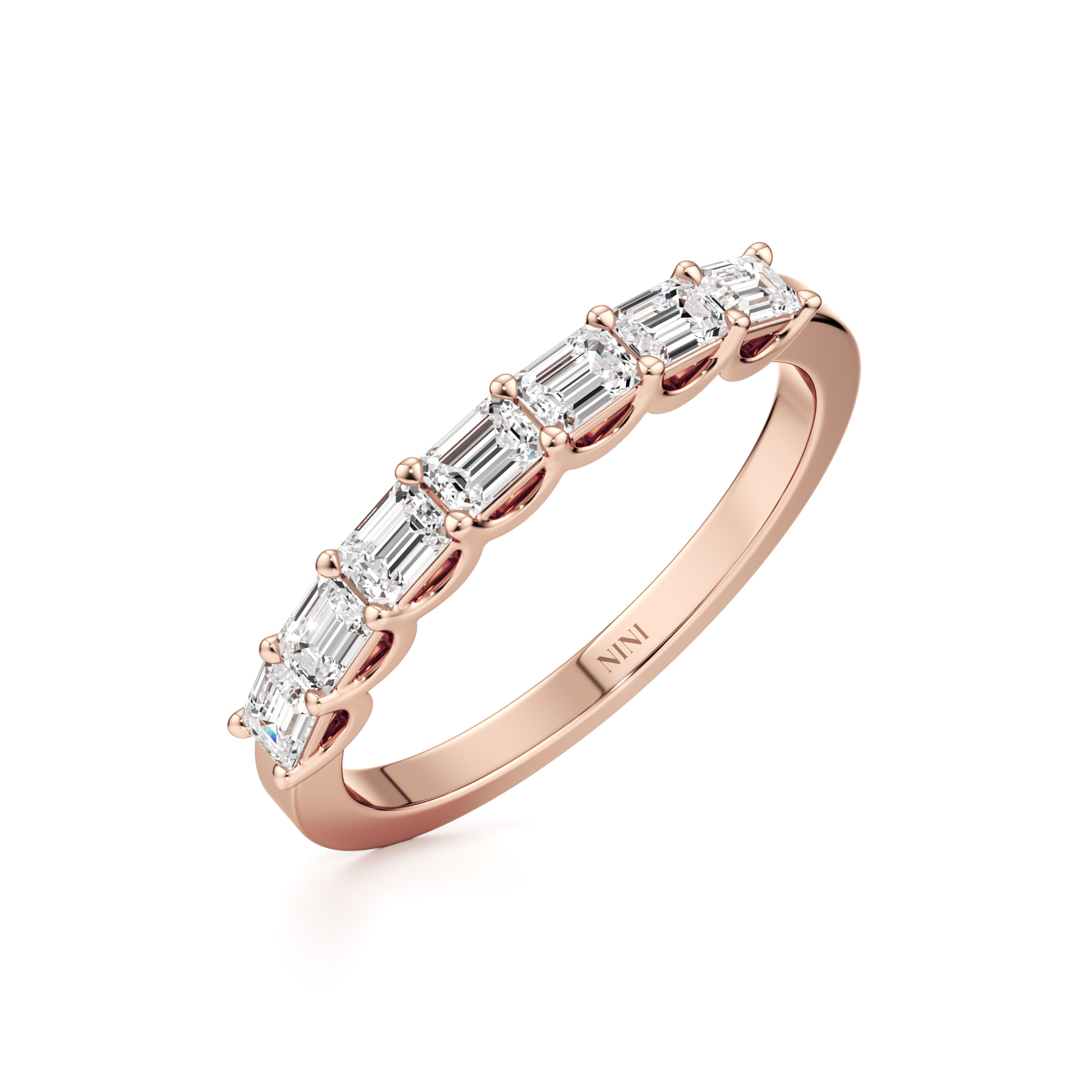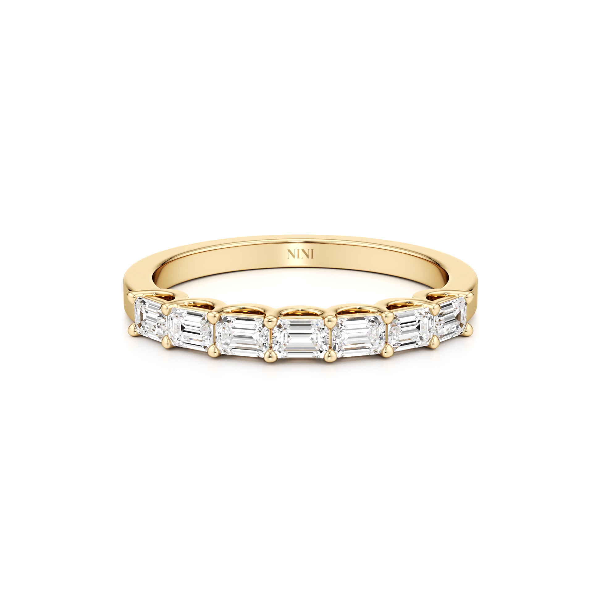 טבעת ייחודית עשויה זהב 14K ומשובצת ביהלומים בחיתוך אמרלד קאט במשקל 0.65 קראט