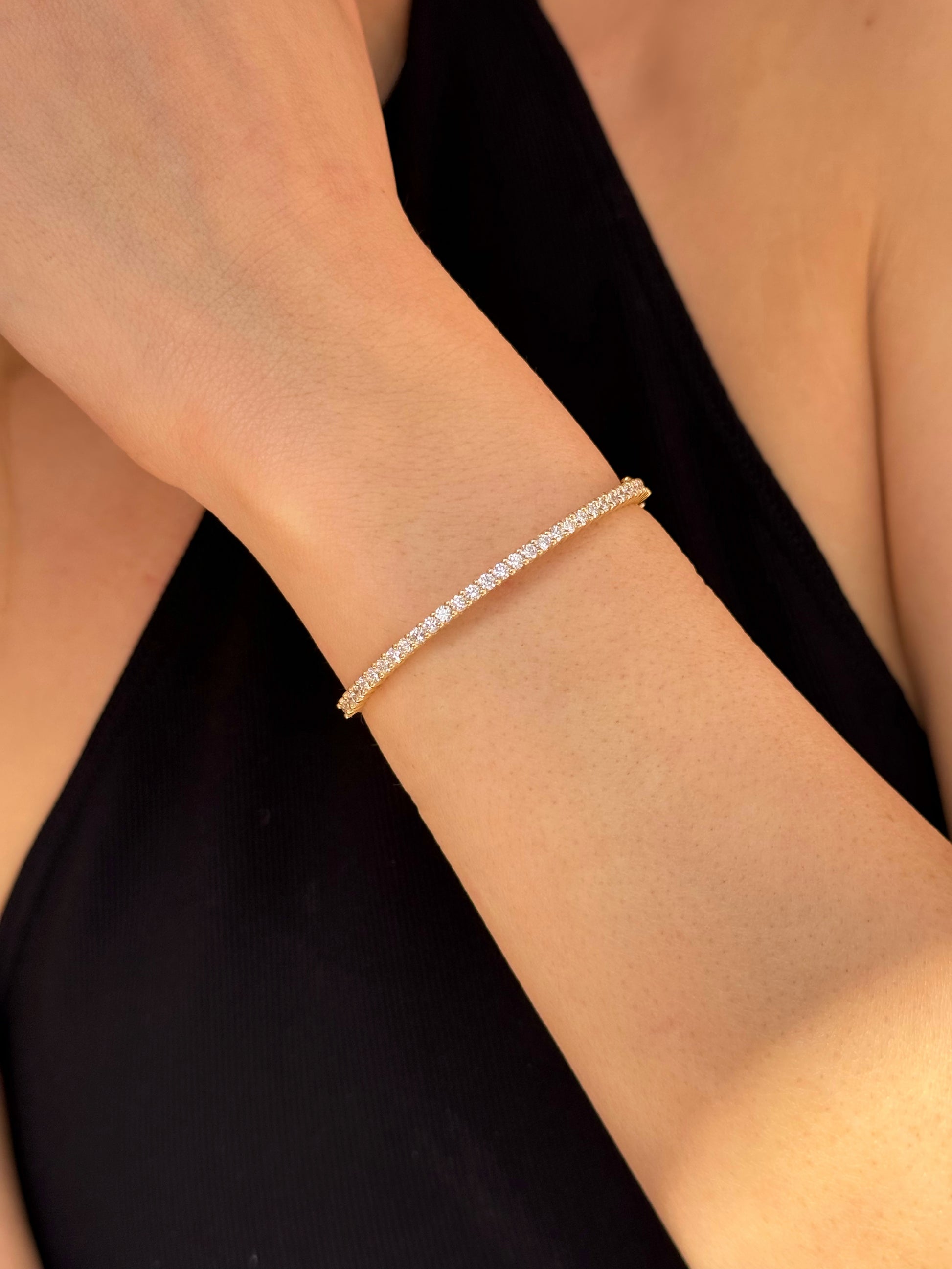 צמיד זהב 14 קראט קשיח משובץ ביהלומים עגולים.