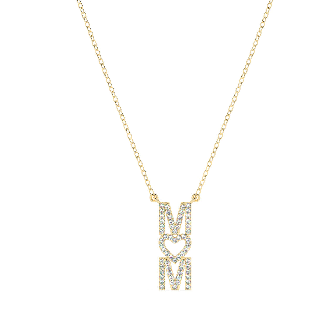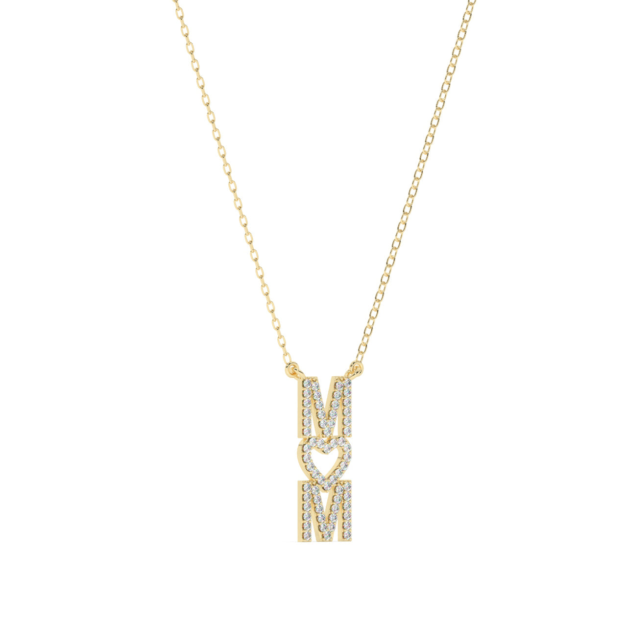 שרשרת זהב 14K תליון MOM משובץ ביהלומים טבעיים.