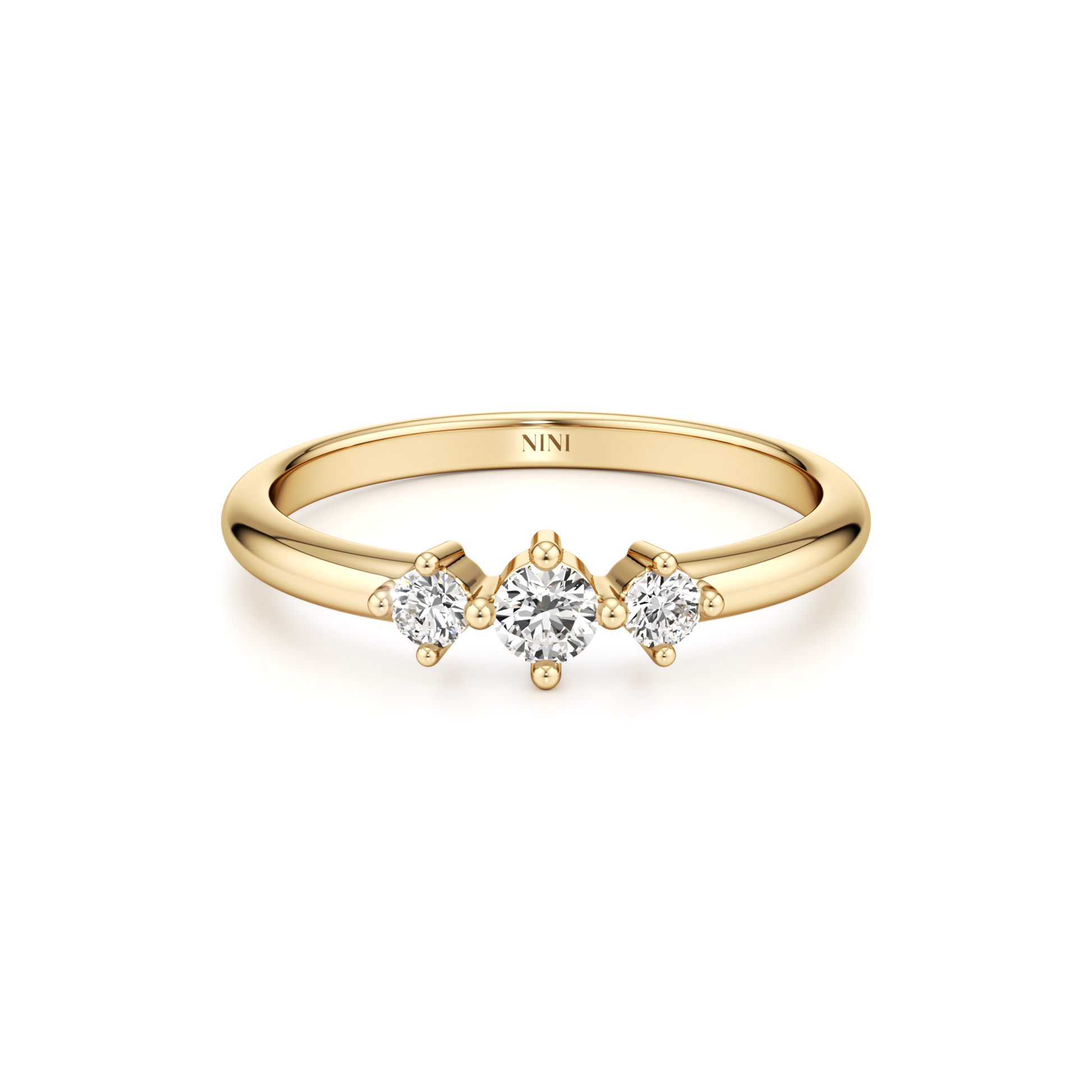 Delicate 14K gold ring set with 3 round diamonds.