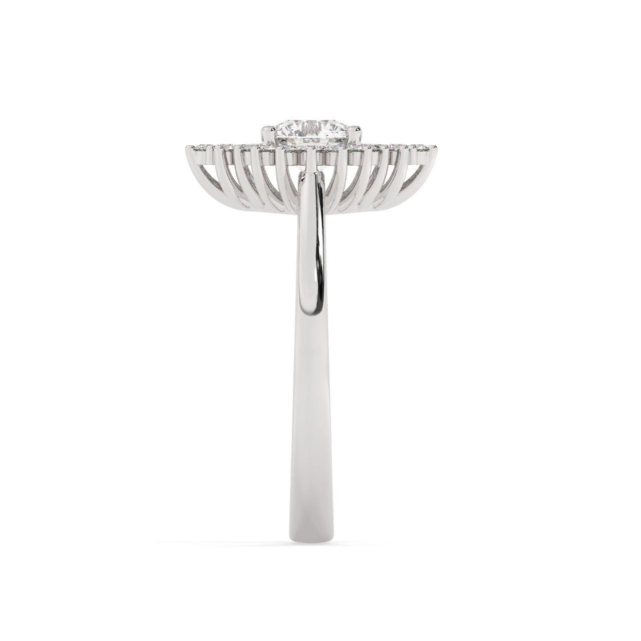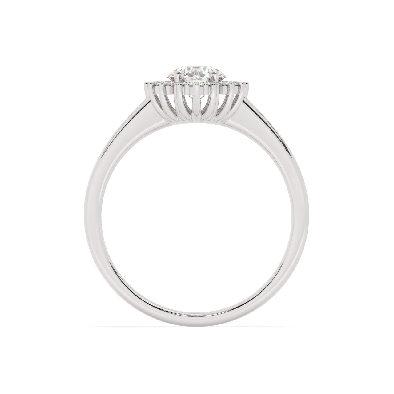 0.50 Carat round diamond vintage inspired engagement ring with diamond accents around the main diamond.
