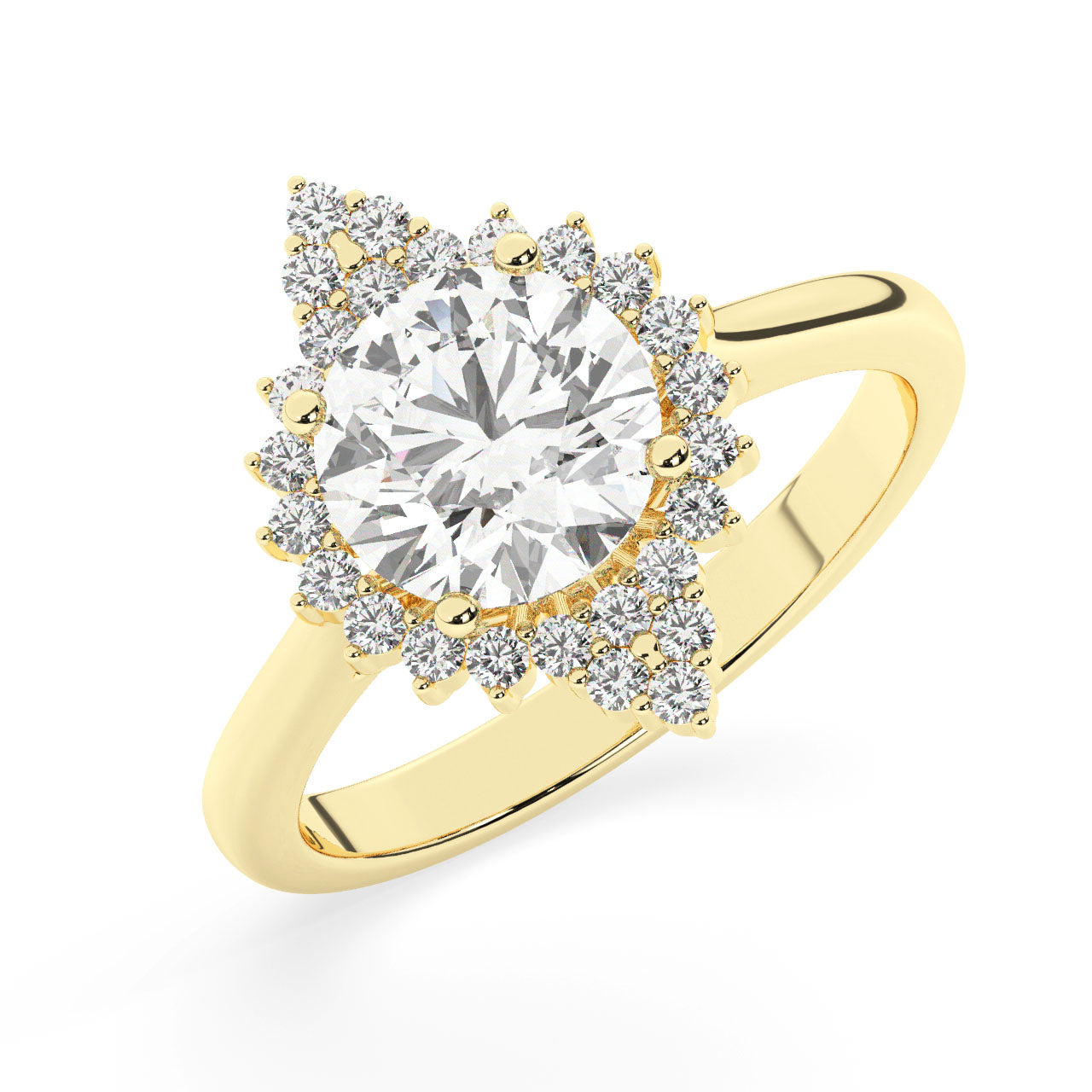 2.00 Carat round diamond vintage inspired engagement ring with diamond accents around the main diamond.