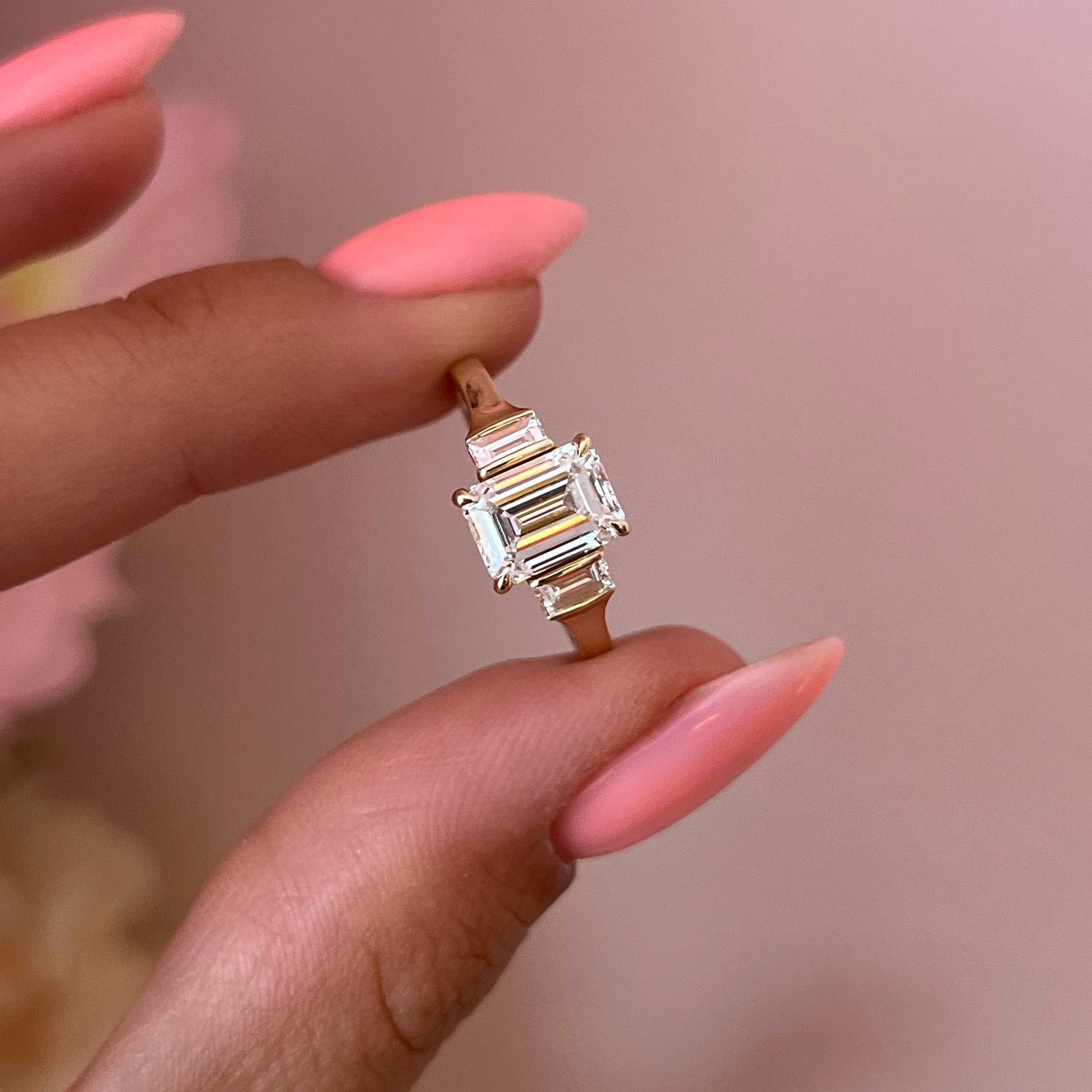Emerald And Baguettes Engagement ring - 1.50 Ct