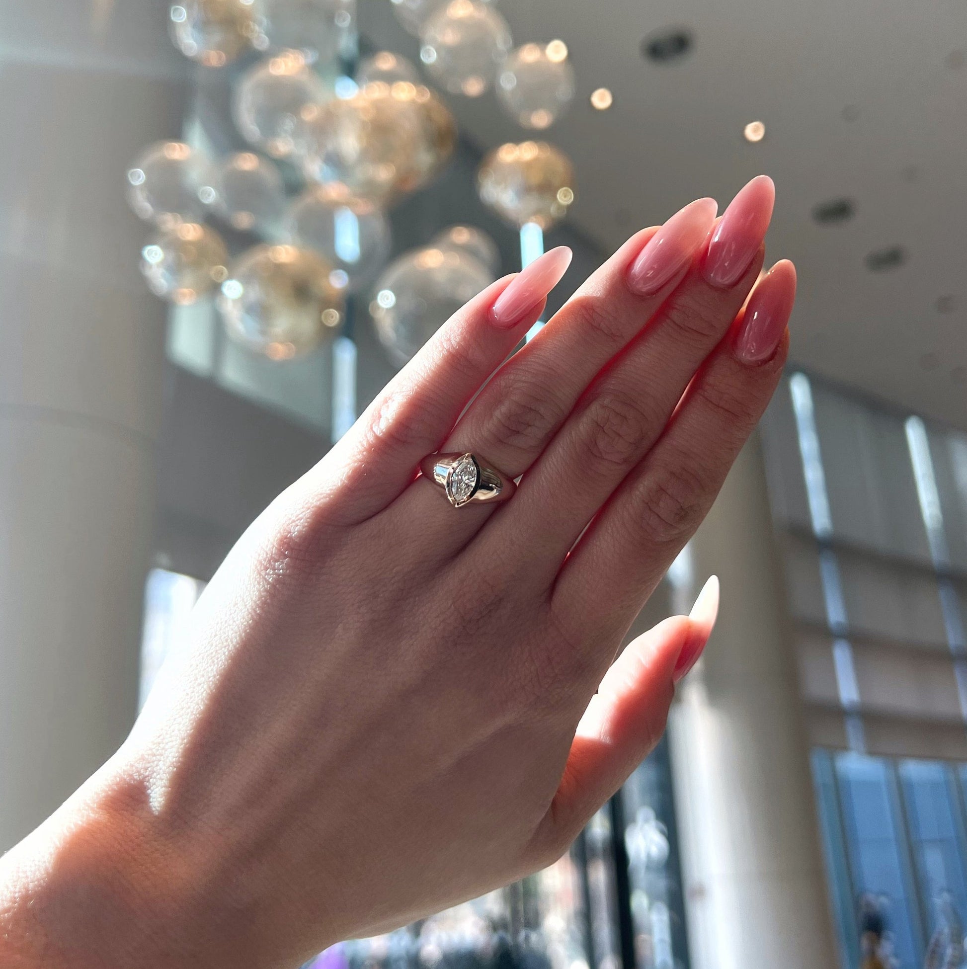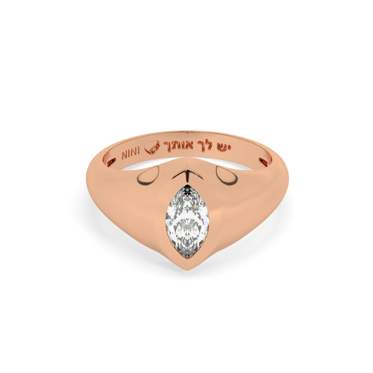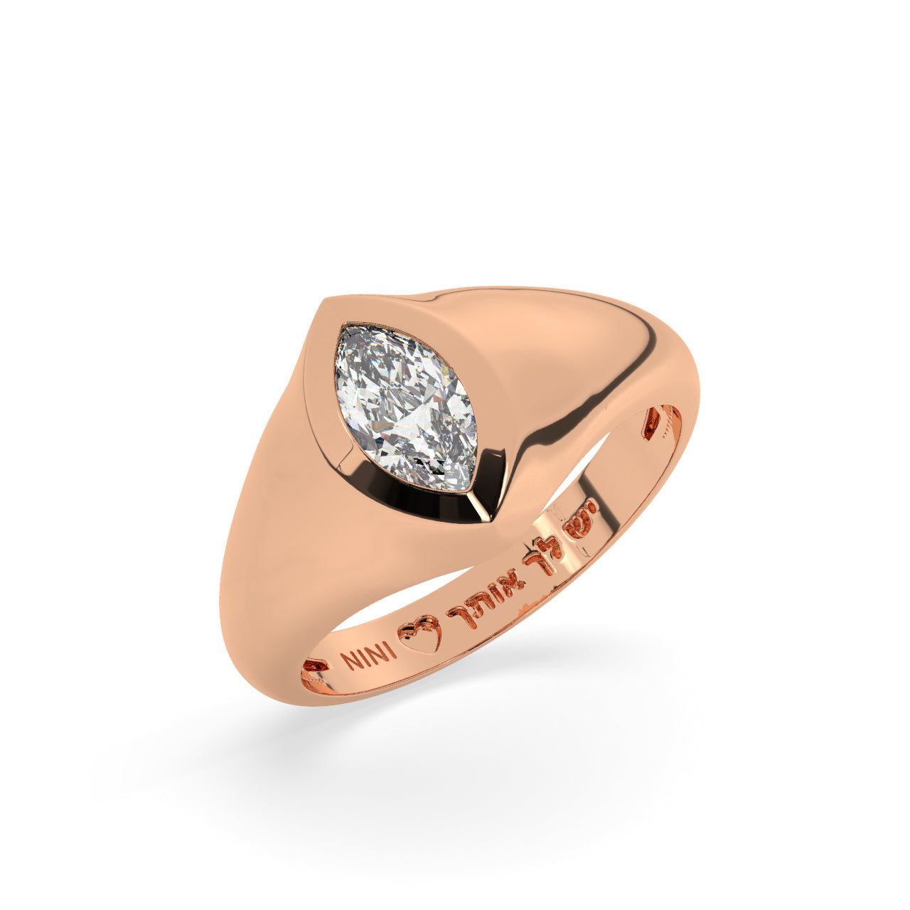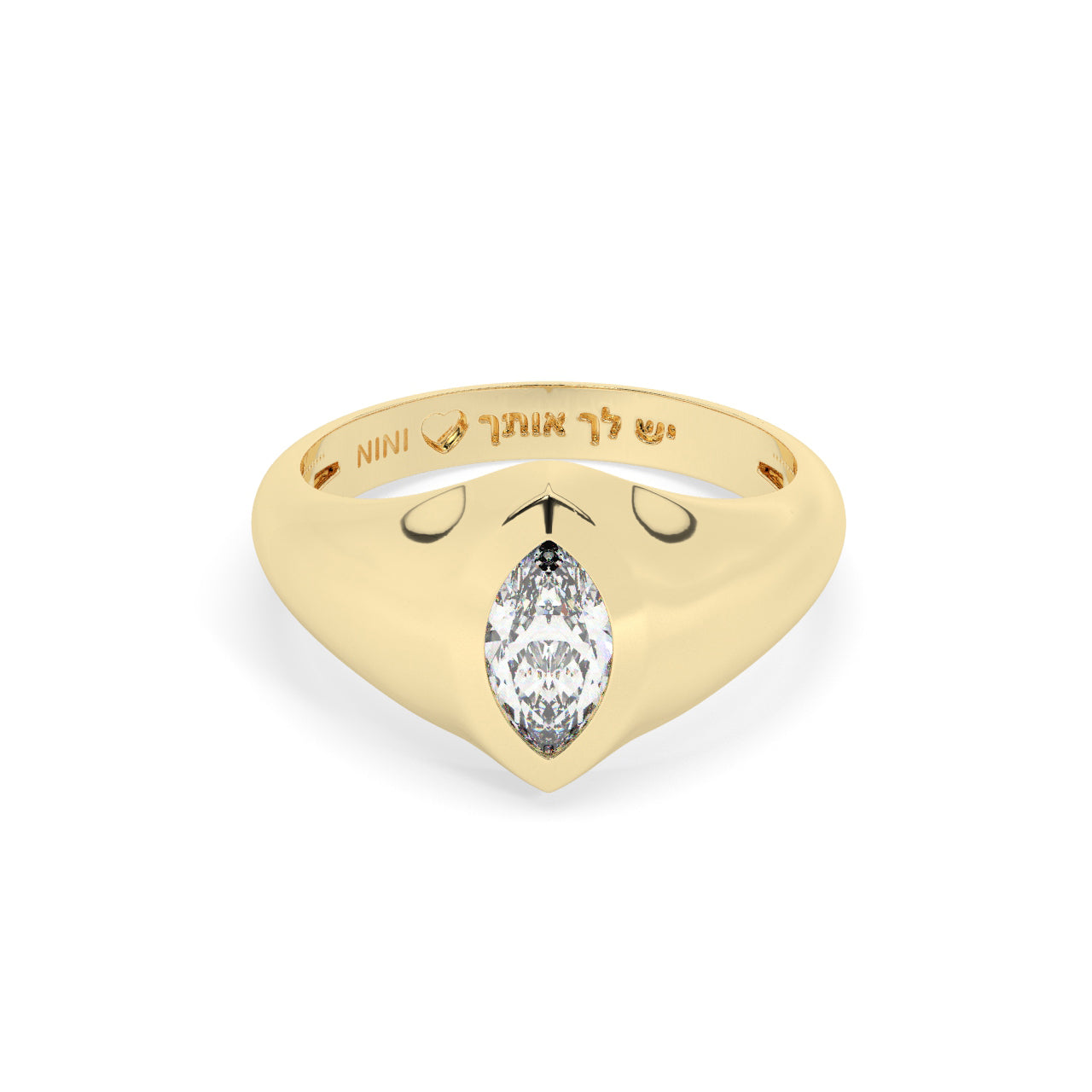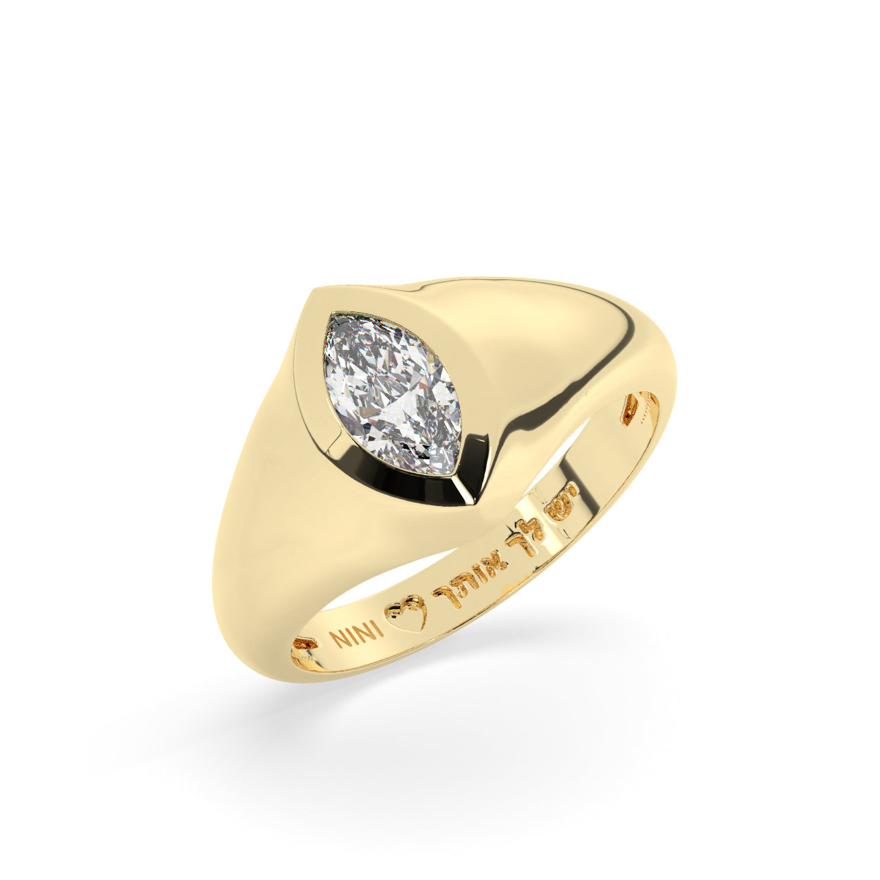 Bold 14K gold signet ring set with a 0.50 carat Marquises cut diamond.