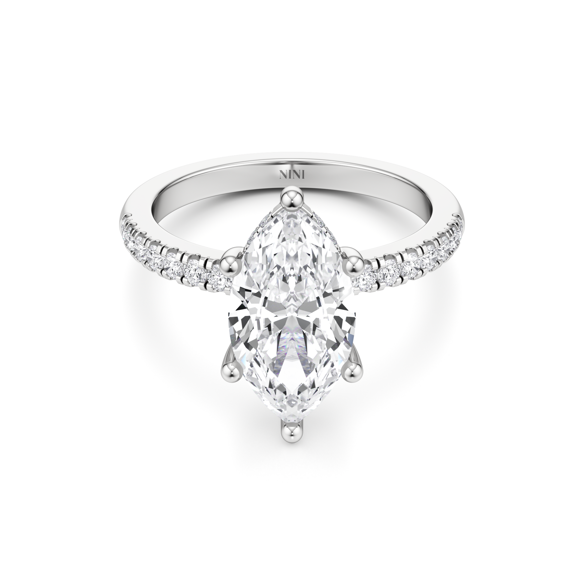 2.00 Carat Marquise cut diamond engagement ring with diamond accents on the band.