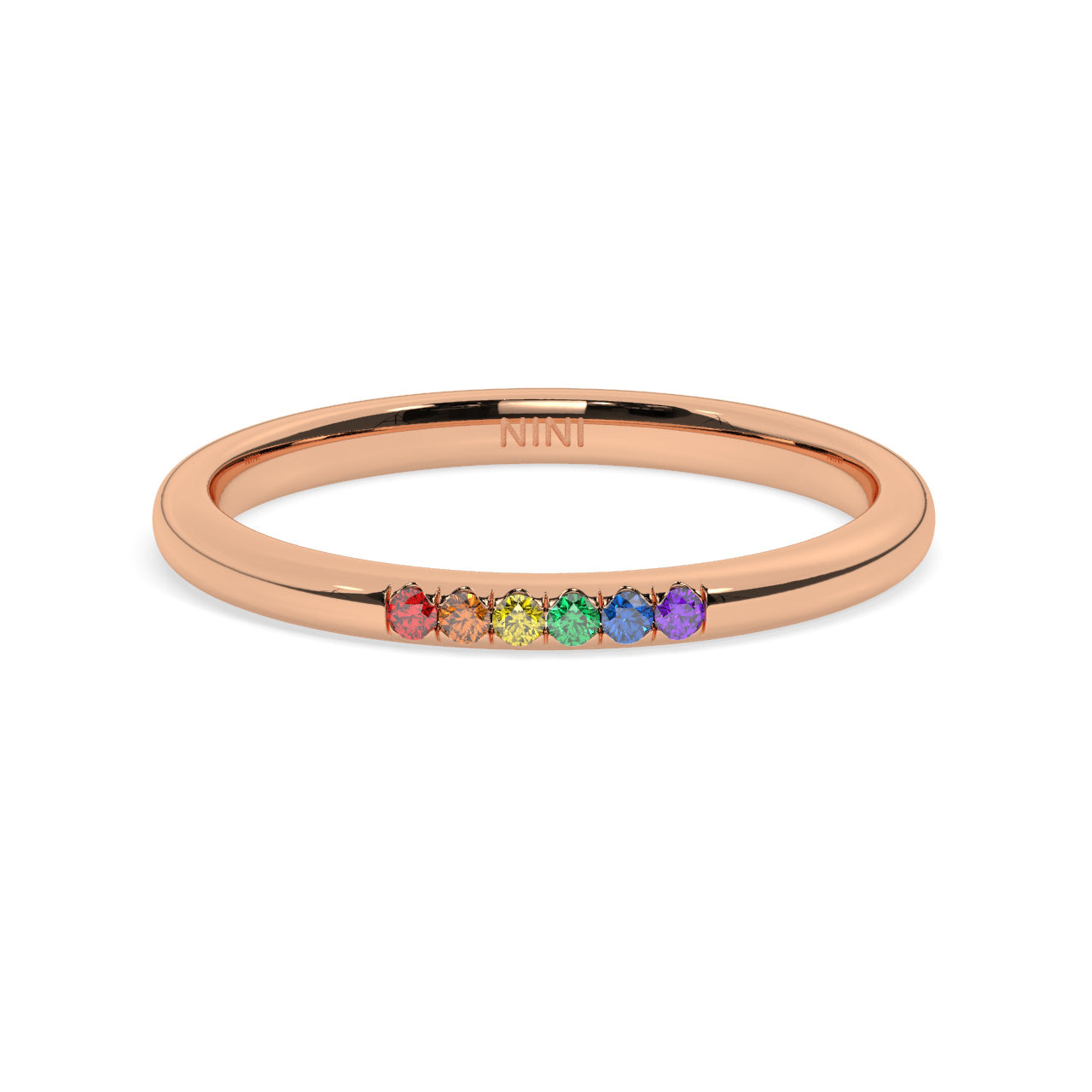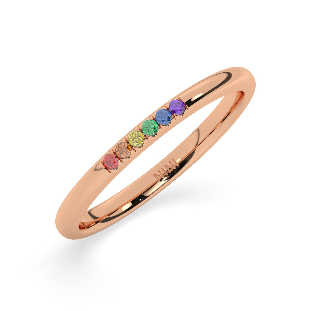 Delicate 14K gold ring set with rainbow colors natural gemstones.