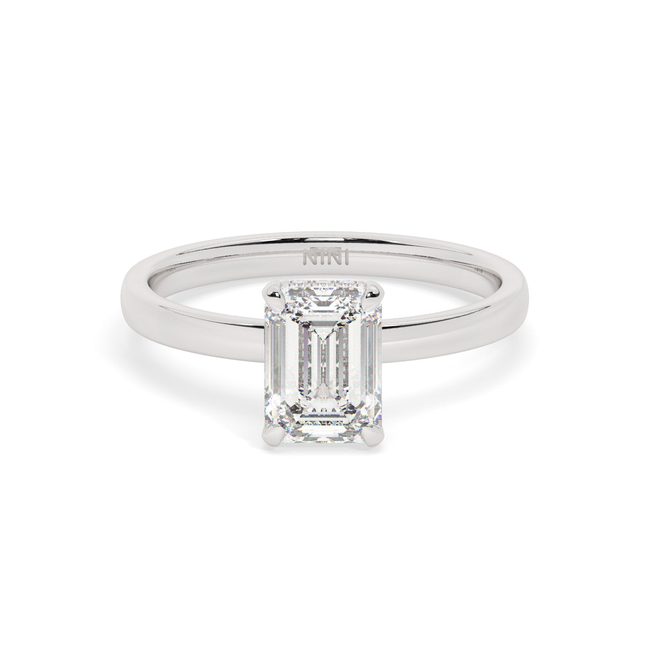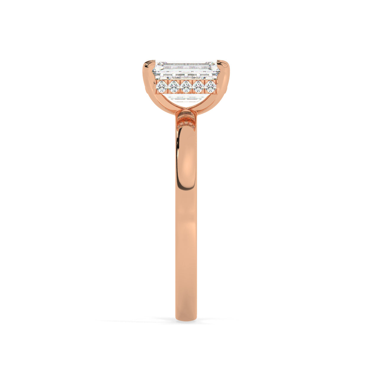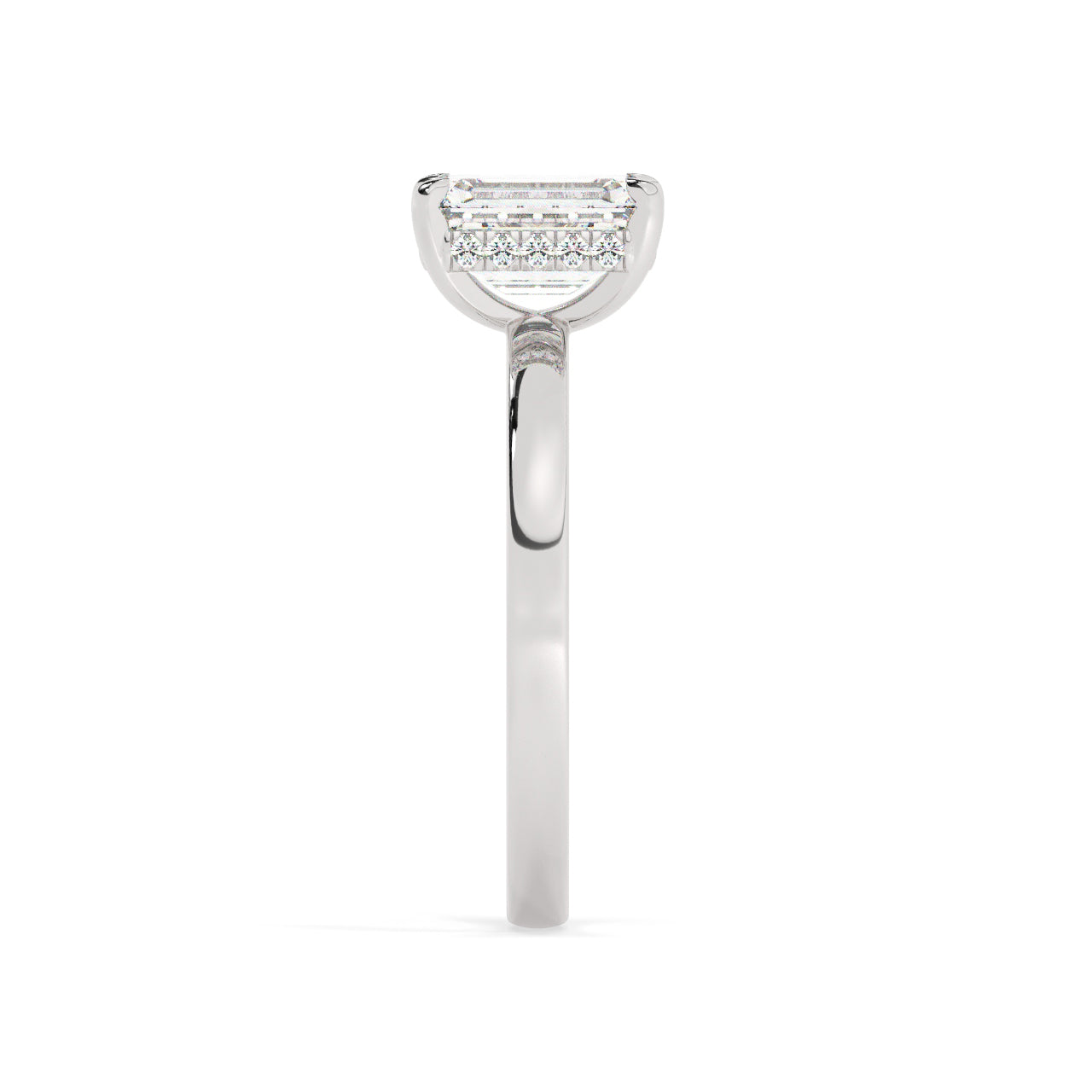 Solitaire Emerald Cut Diamond Engagement Ring - 1.50 Ct - Hidden Halo