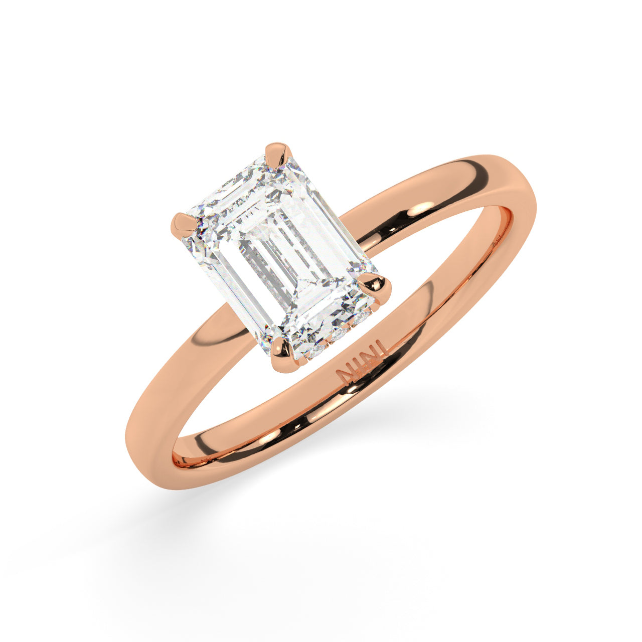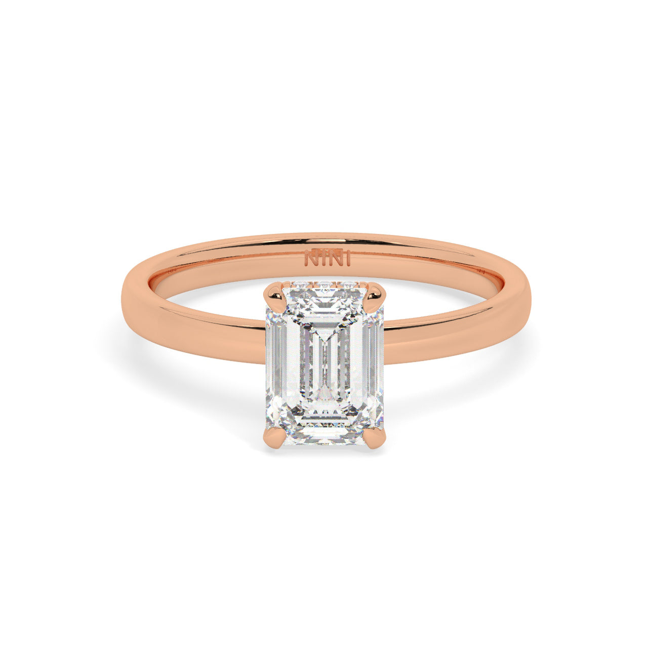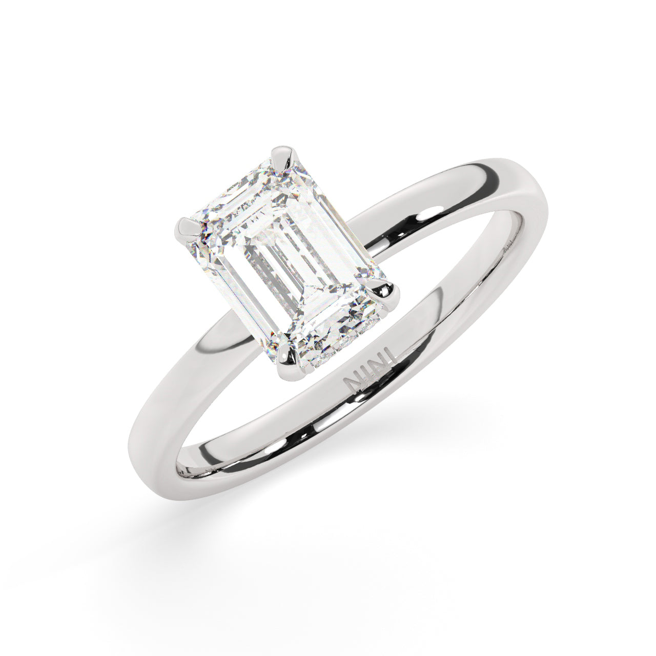 Solitaire Emerald Cut Diamond Engagement Ring - 1.50 Ct - Hidden Halo