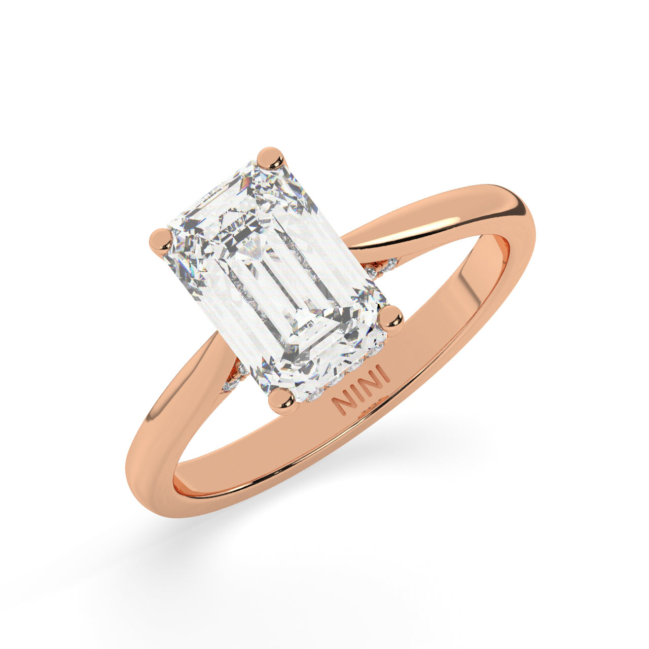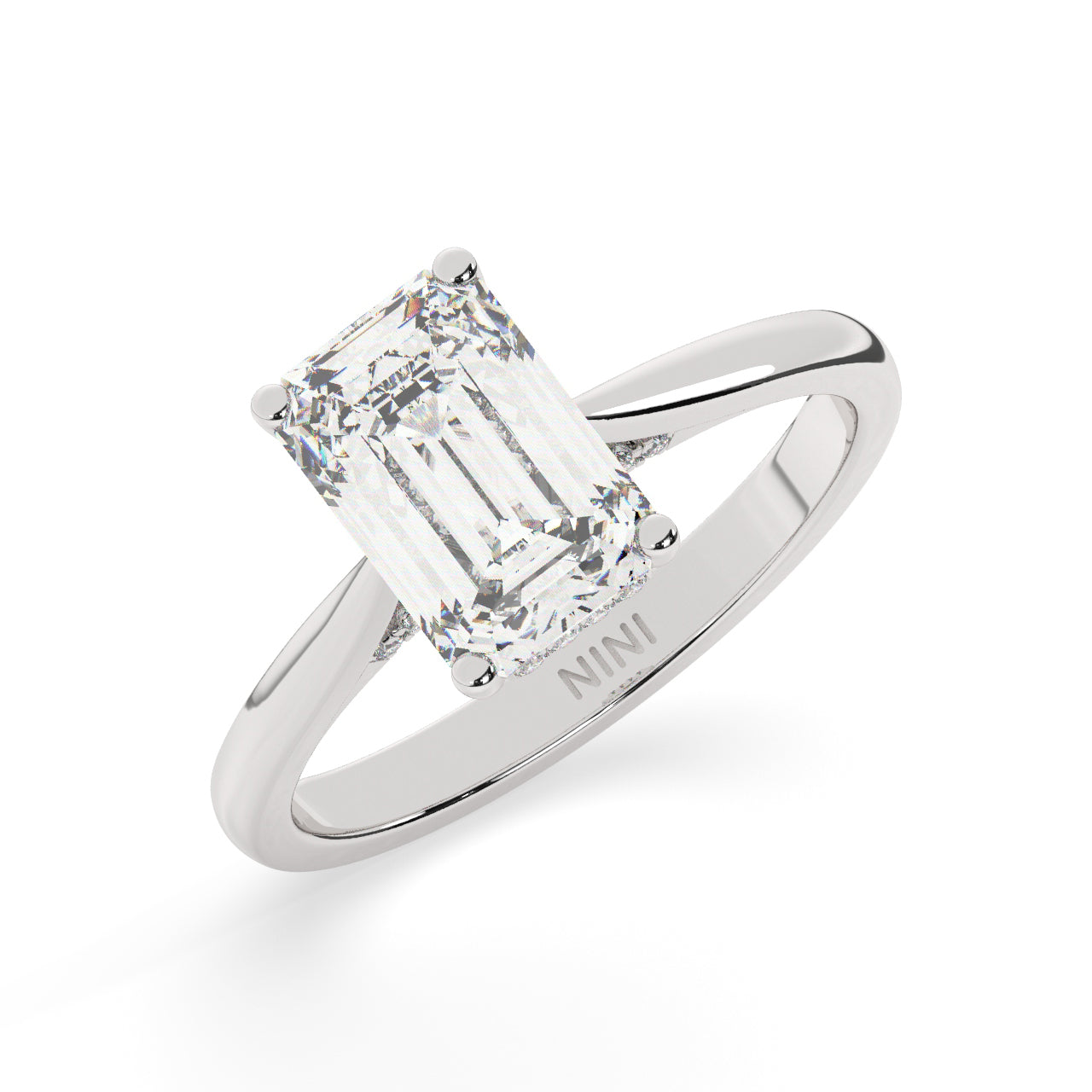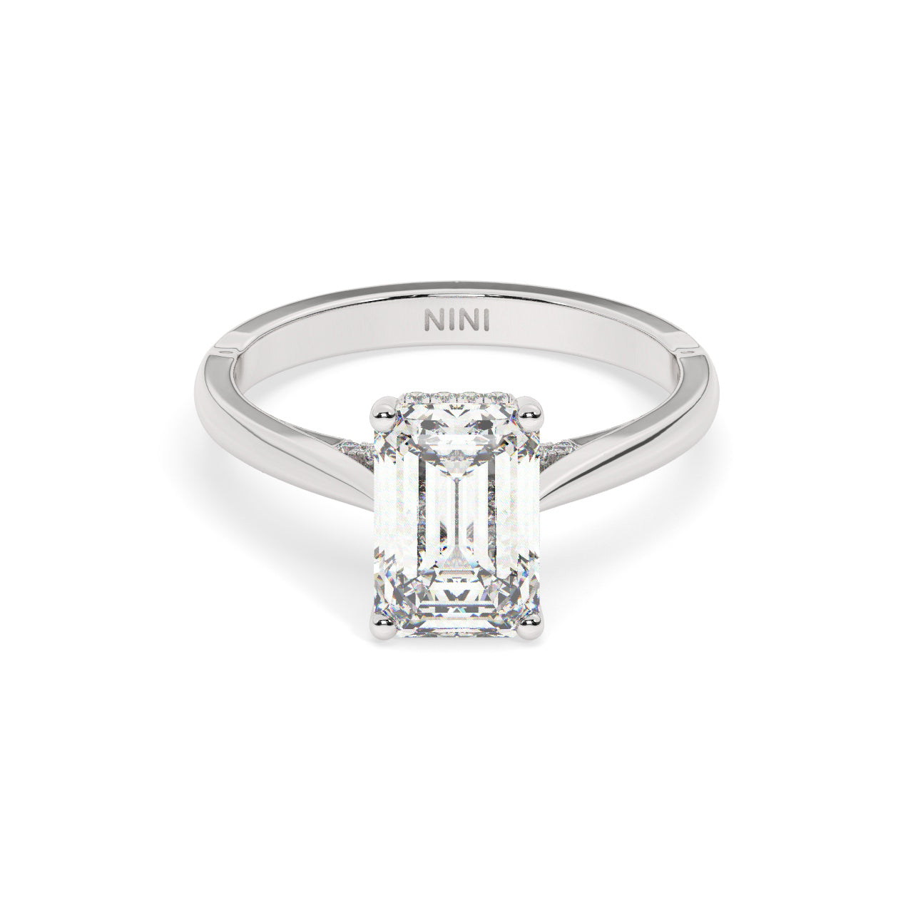 Solitaire Emerald Cut Diamond Engagement ring - 2.00 Ct - Hidden Halo