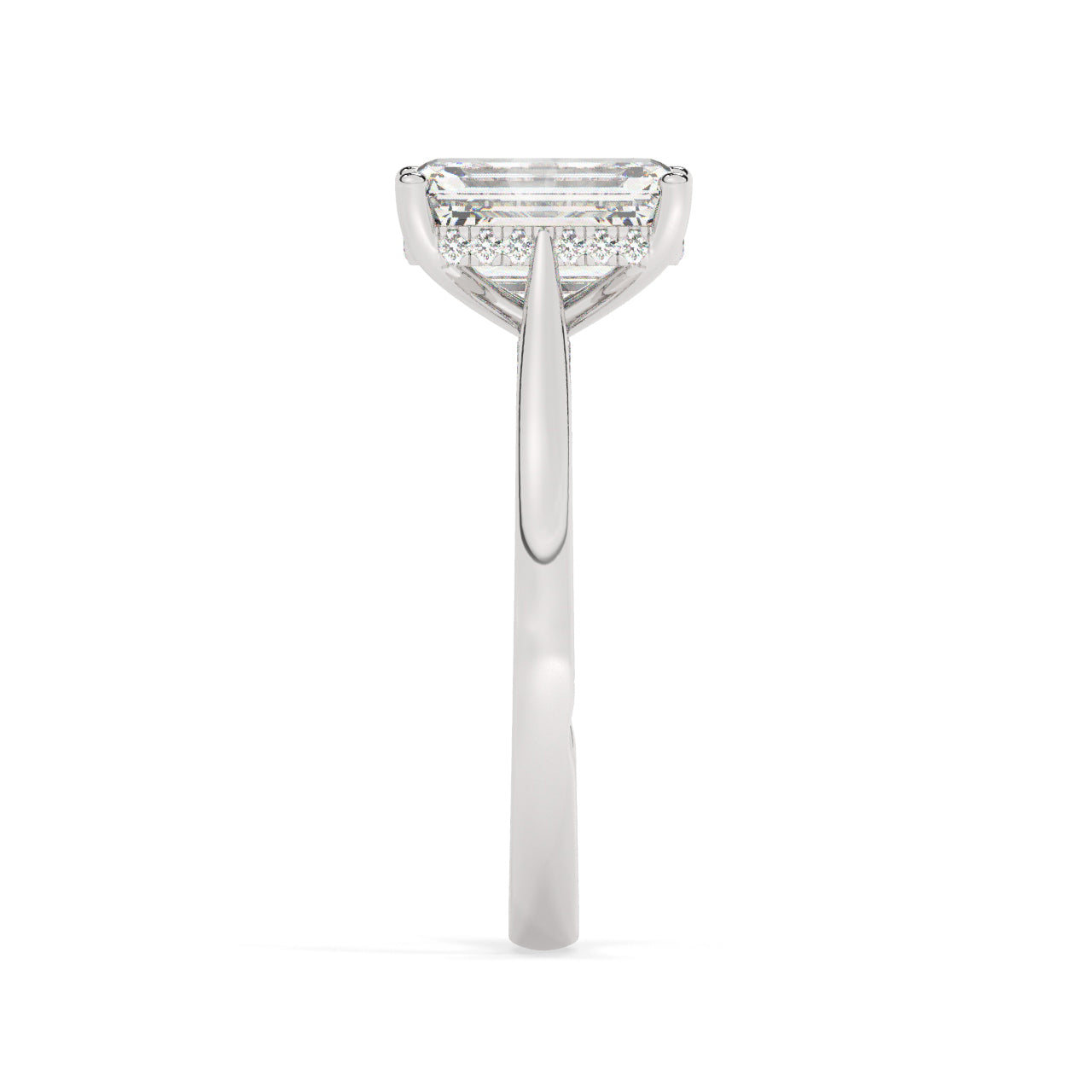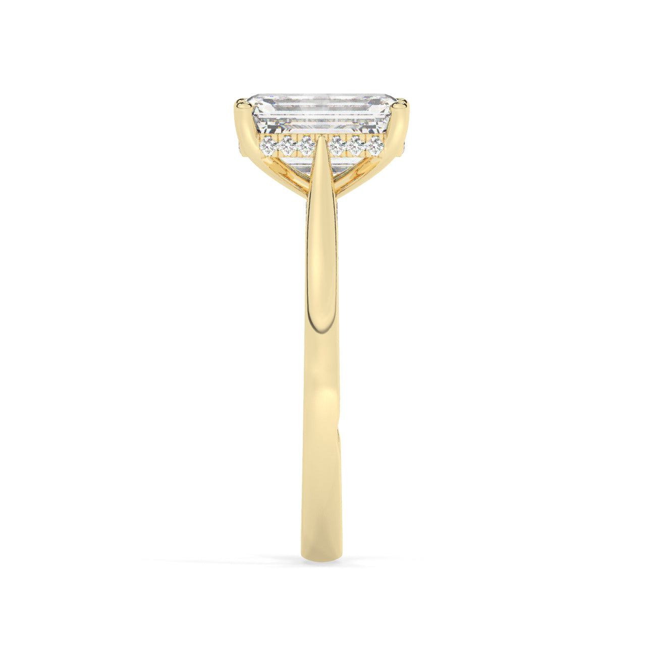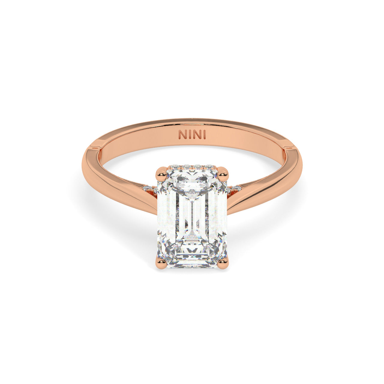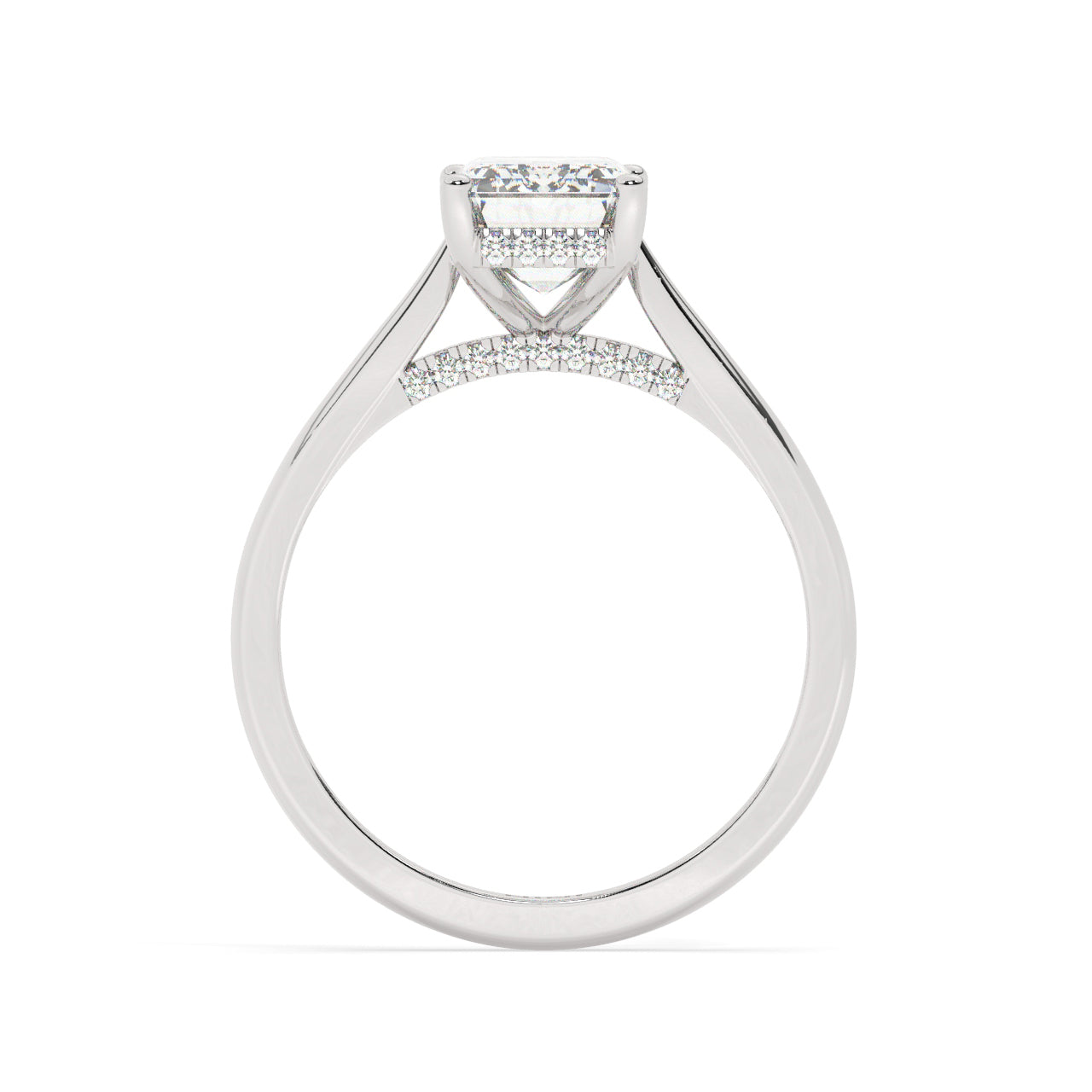 Solitaire Emerald Cut Diamond Engagement ring - 2.00 Ct - Hidden Halo