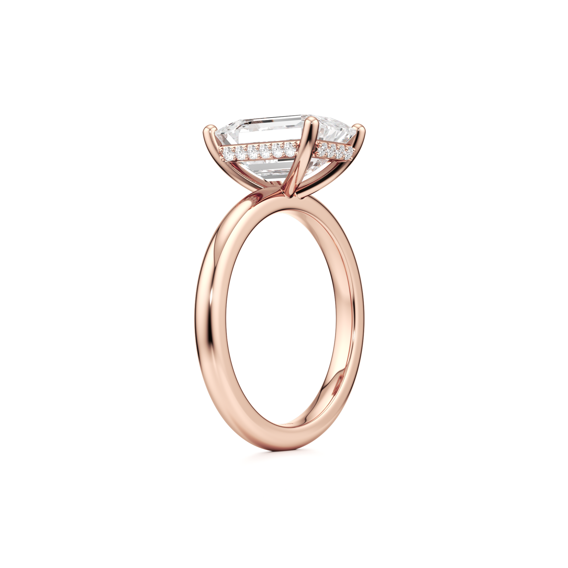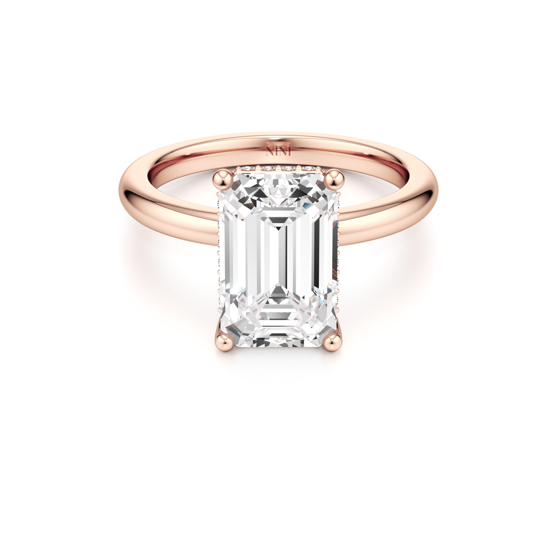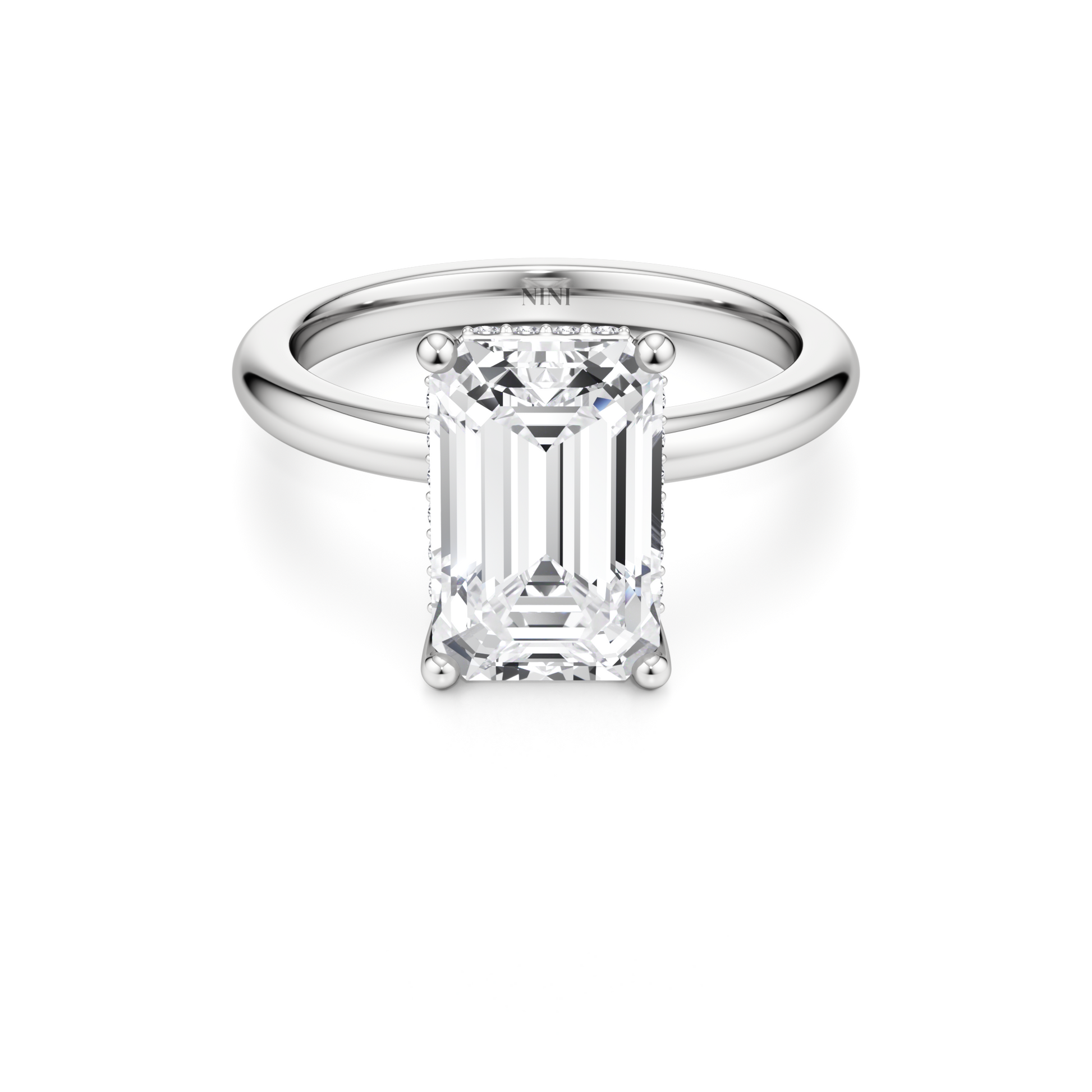 Solitaire Emerald Cut Diamond Hidden Halo Engagement ring - 3.00 Ct