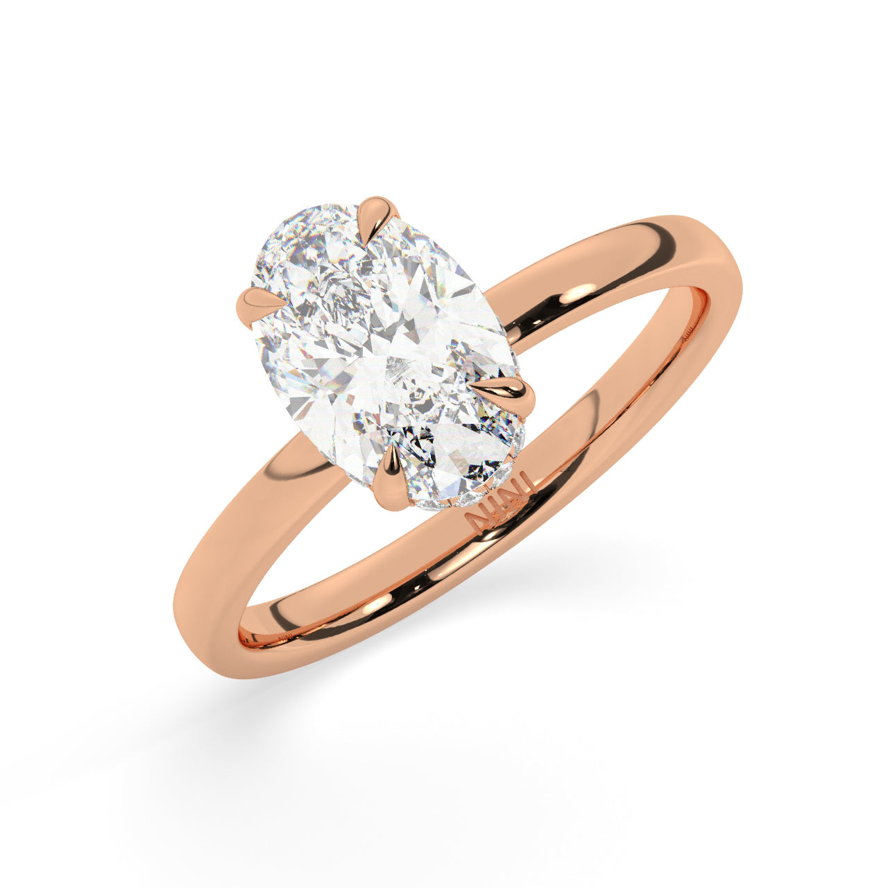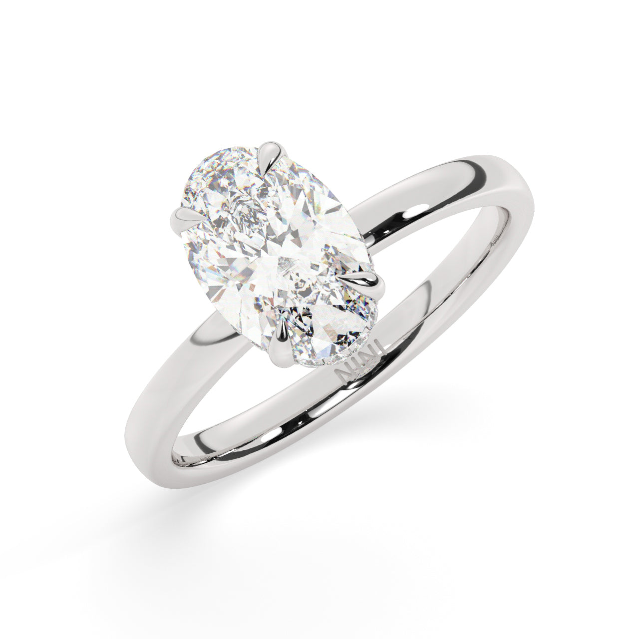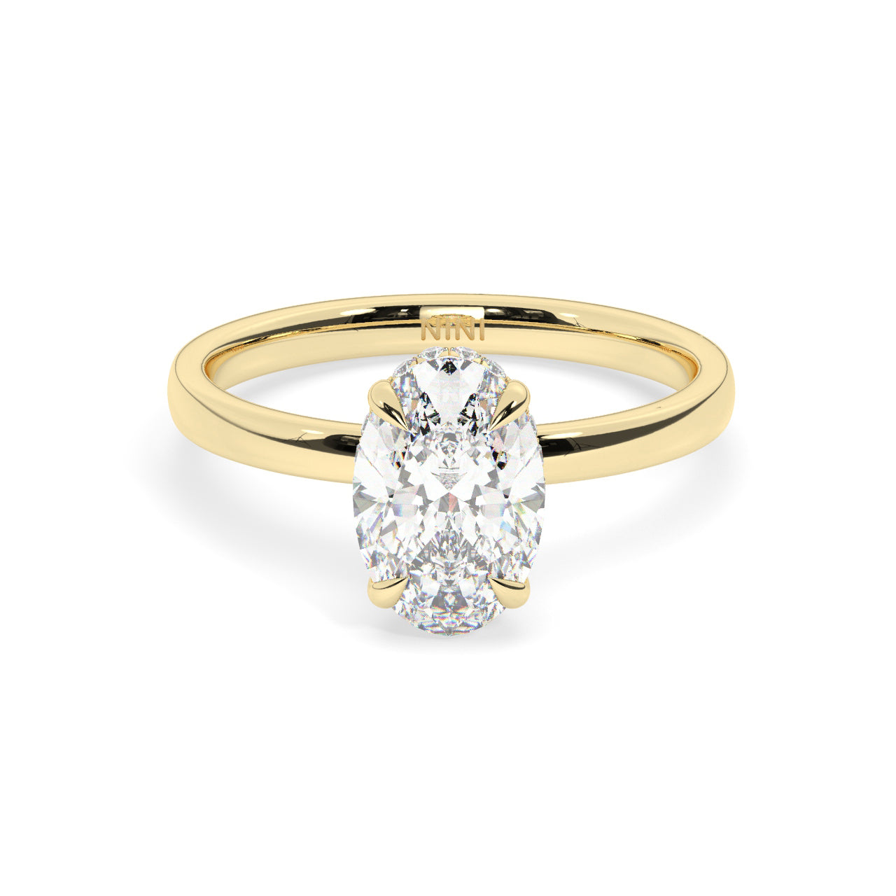 Solitaire Oval Diamond Engagement ring - 1.50 Ct - Hidden Halo