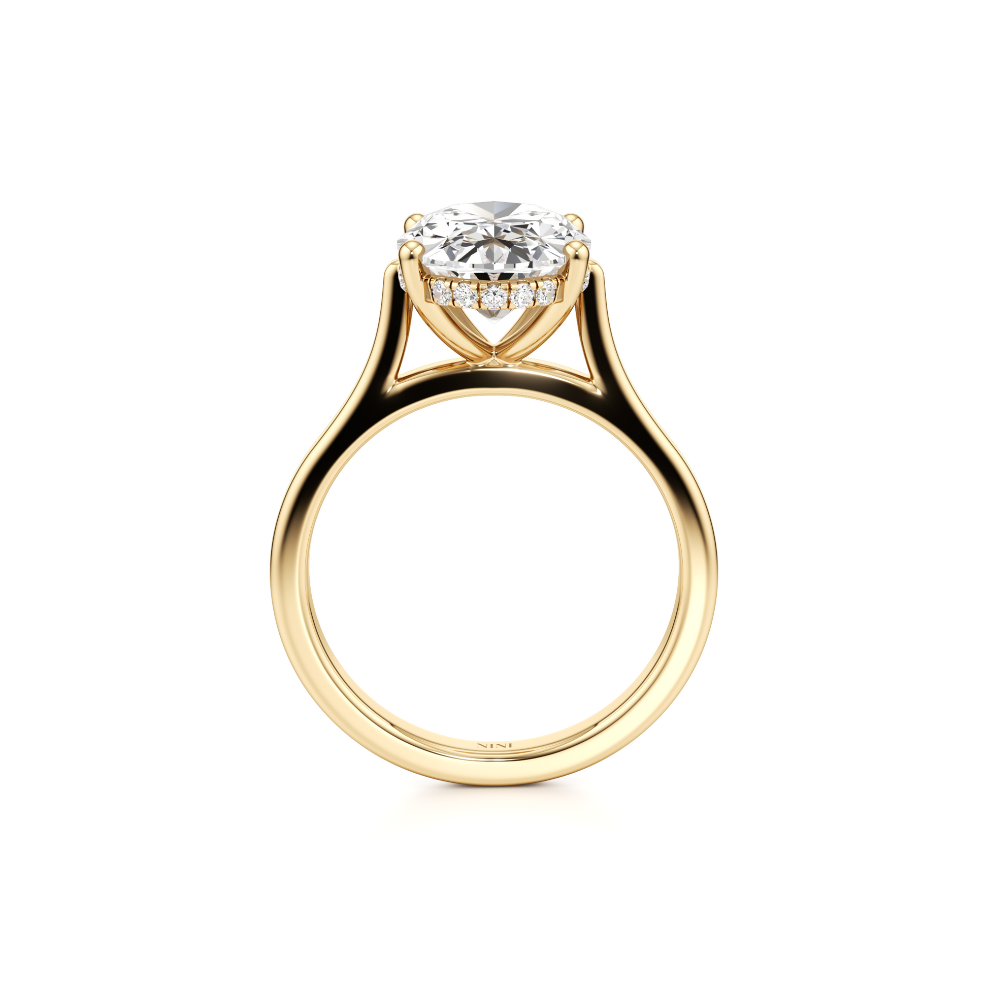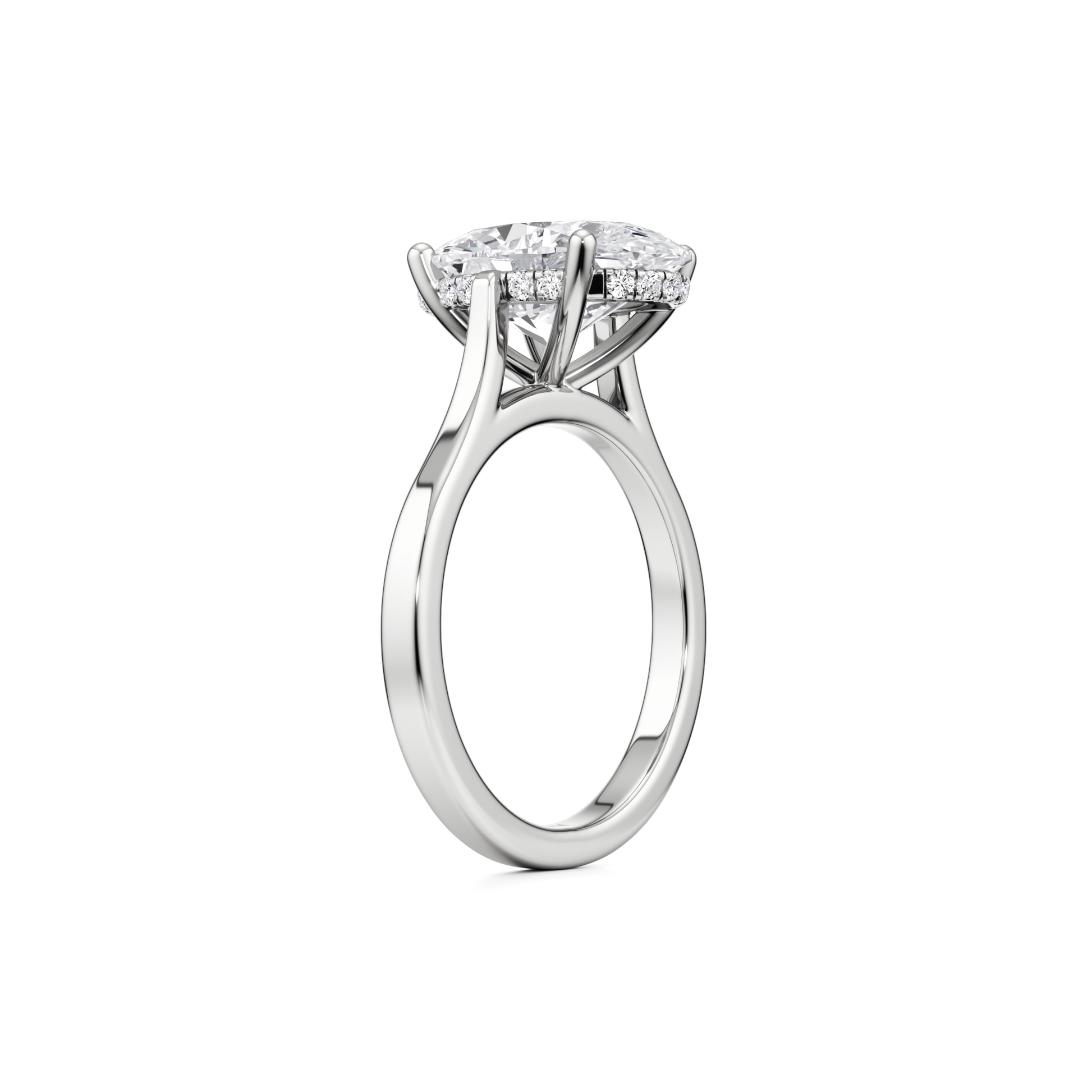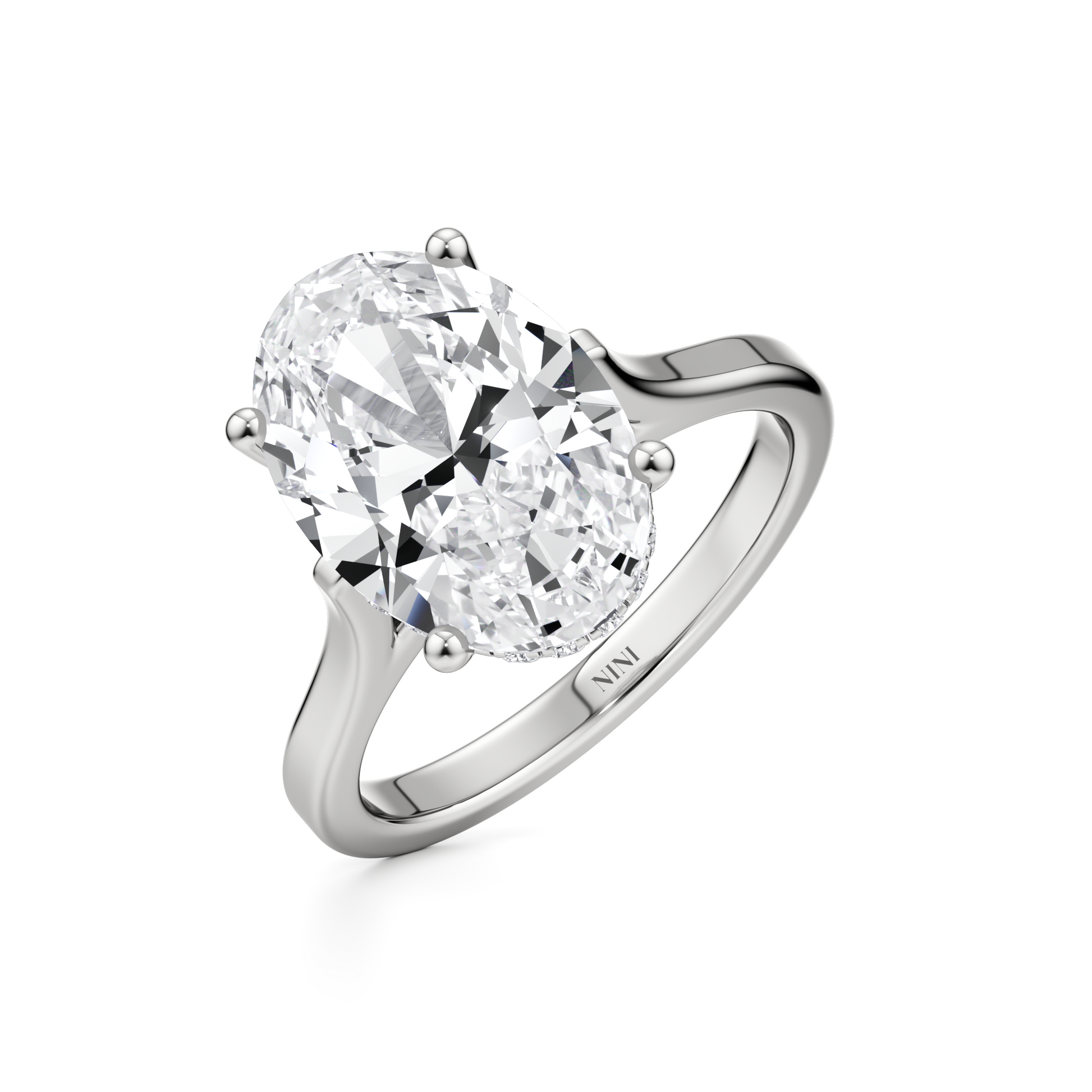 Solitaire Oval Diamond Engagement ring - 3.00 Ct Hidden Halo